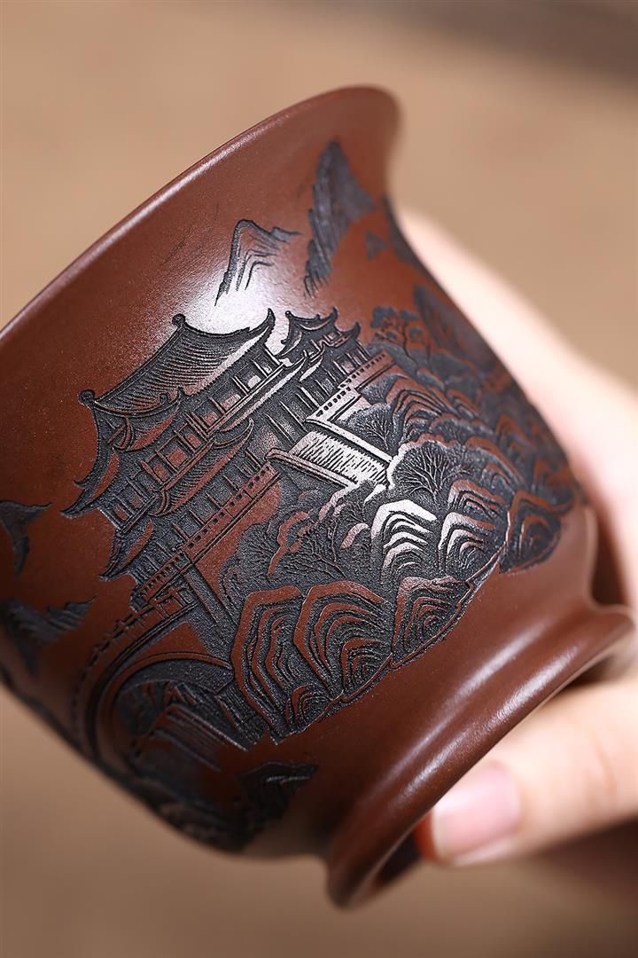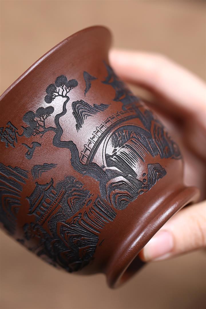 450cc原礦紫泥竹影蓋杯茶杯POT10067