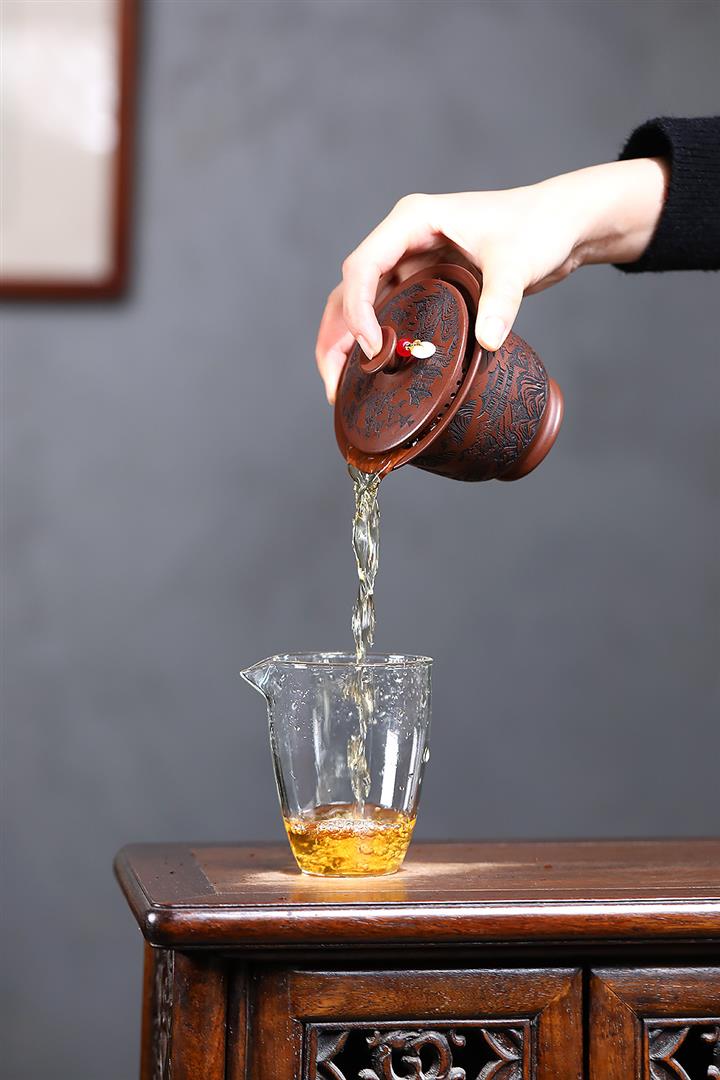 【泥料特點】砂土氣重,似淳實農民,日久使用,漸露鋒芒,養成變化,溫潤莊重。紫砂是壹種雙重氣孔結構的多孔性材質,氣孔微細,密度高。用紫砂壺沏茶,不失原味,且香不渙散,得茶之真香真味。紫砂使用越久,壺身色澤越發光亮照人,氣韻溫雅。紫砂壺長久使用器身會因撫摸擦拭,變得越發溫潤光澤。