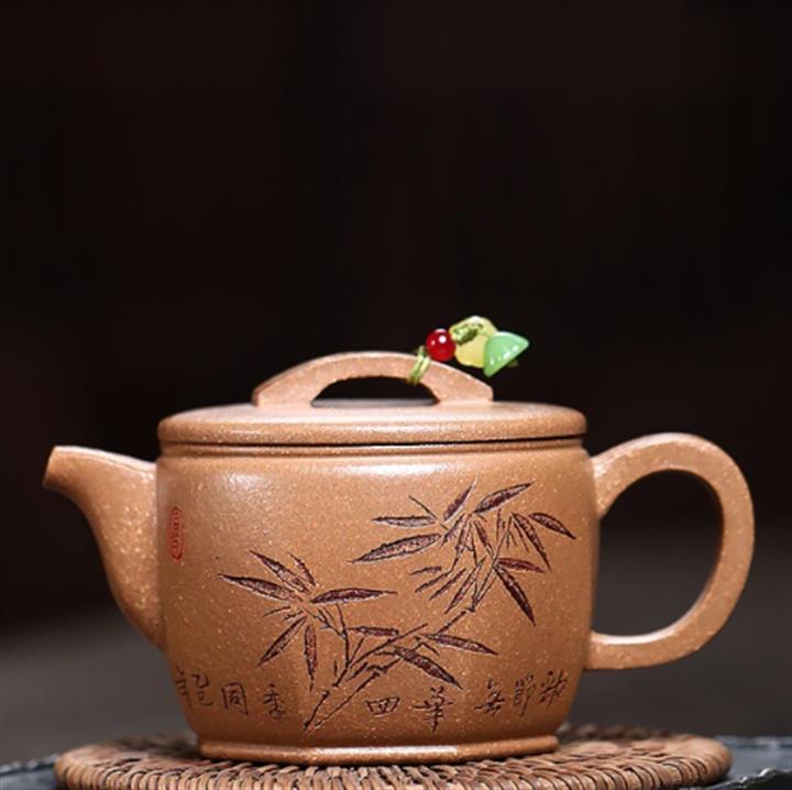 250cc原礦金降坡壹方竹影漢瓦茶壺POT9271