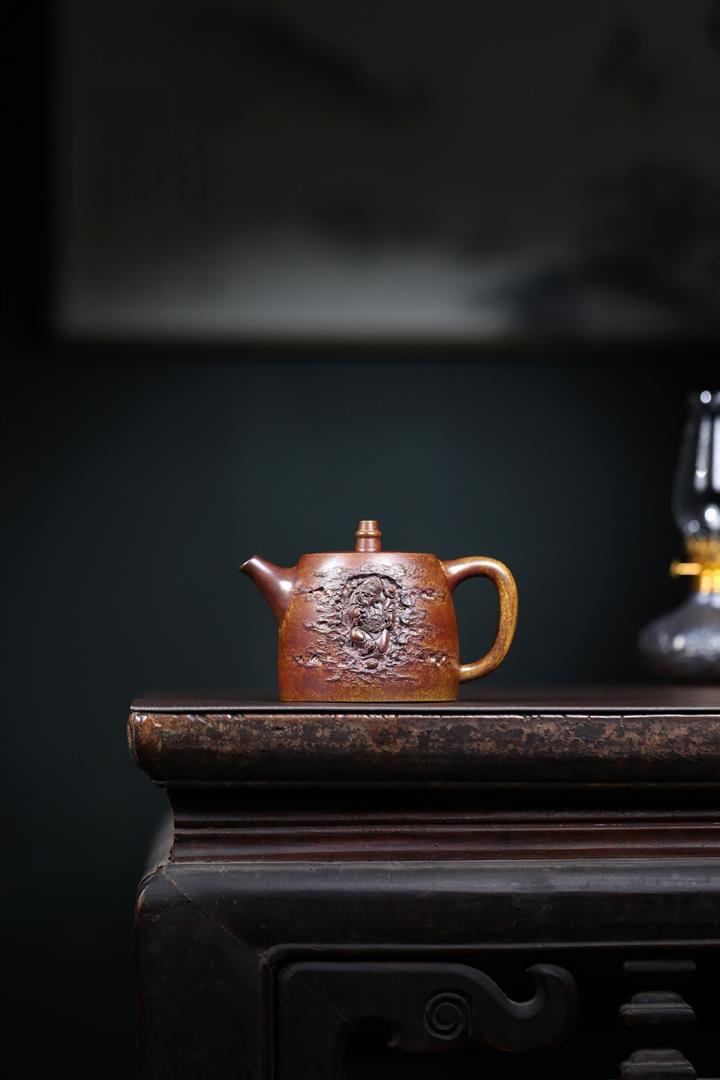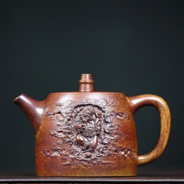 250cc原礦金降坡壹方竹影漢瓦茶壺POT9271