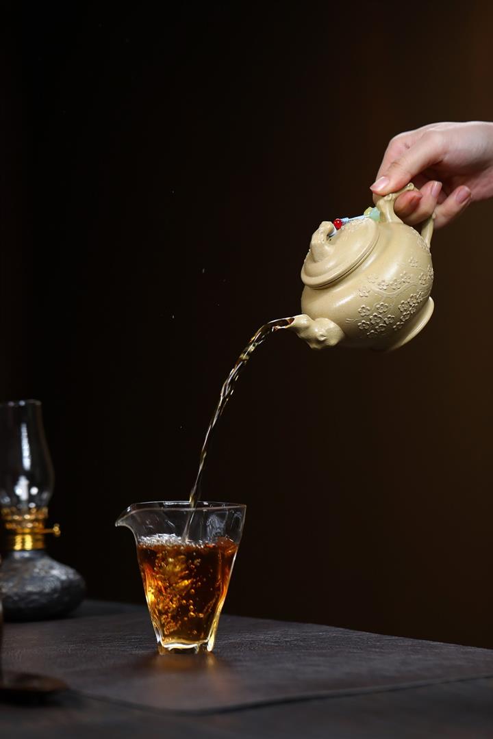 【泥料特點】砂土氣重,似淳實農民,日久使用,漸露鋒芒,養成變化,溫潤莊重。紫砂是壹種雙重氣孔結構的多孔性材質,氣孔微細,密度高。用紫砂壺沏茶,不失原味,且香不渙散,得茶之真香真味。紫砂使用越久,壺身色澤越發光亮照人,氣韻溫雅。紫砂壺長久使用器身會因撫摸擦拭,變得越發溫潤光澤。