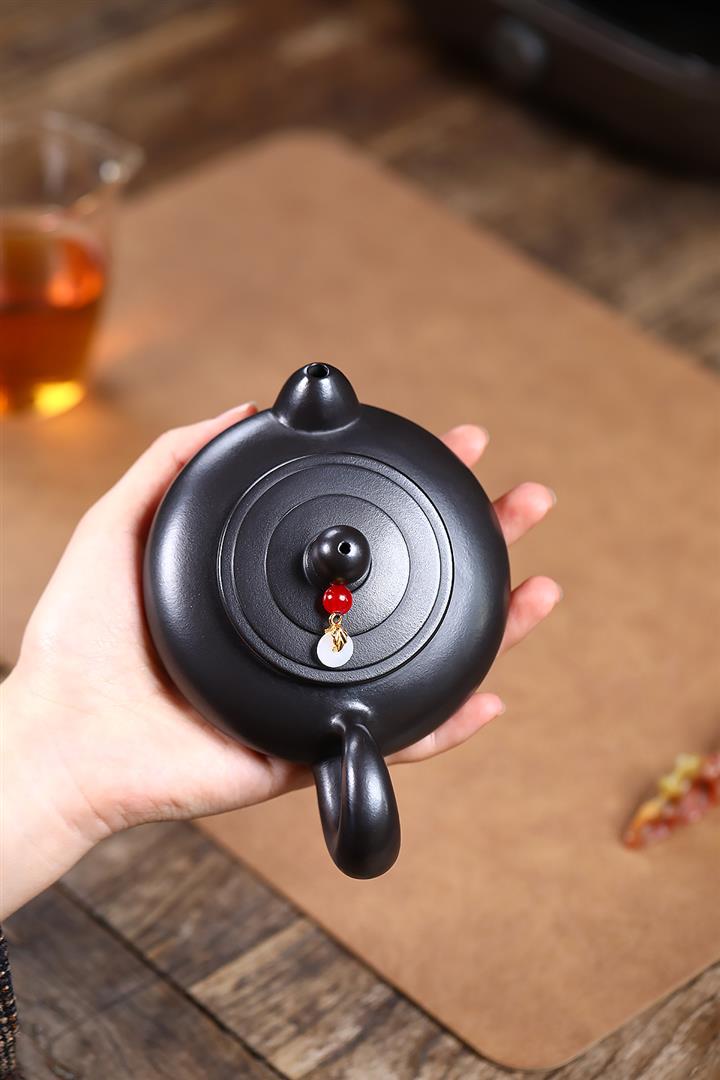 180cc原礦玄鐵石黃道洪扁燈茶壺POT9277
