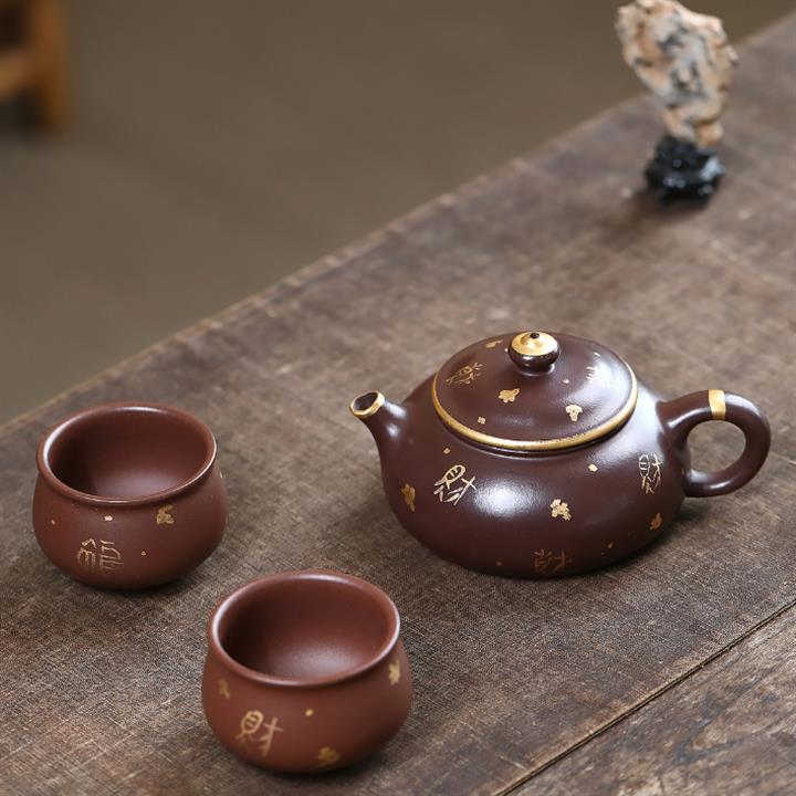260cc原礦紫泥描金漢鐸壹壺兩杯茶壺POT9285