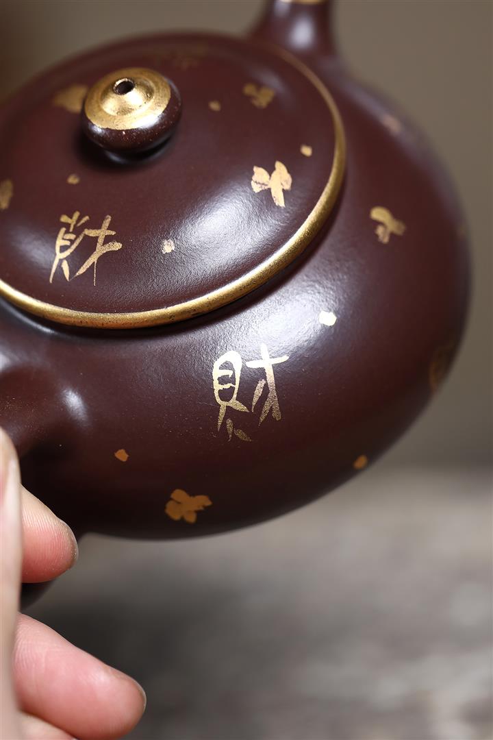 180cc原礦紫泥來財描金寒江茶壺POT9283