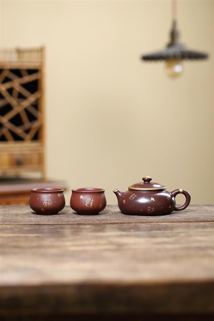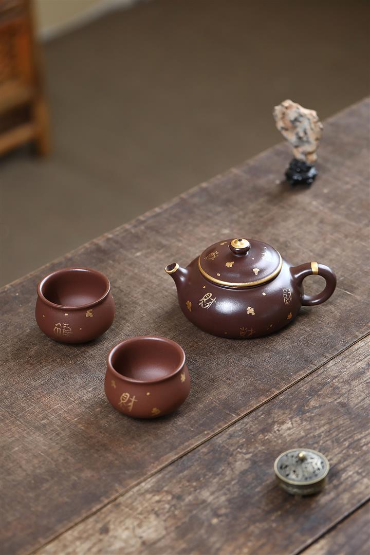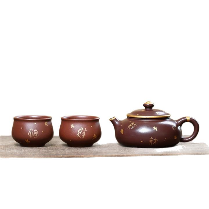260cc原礦紫泥描金漢鐸壹壺兩杯茶壺POT9285