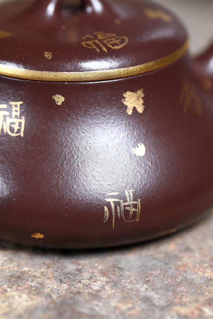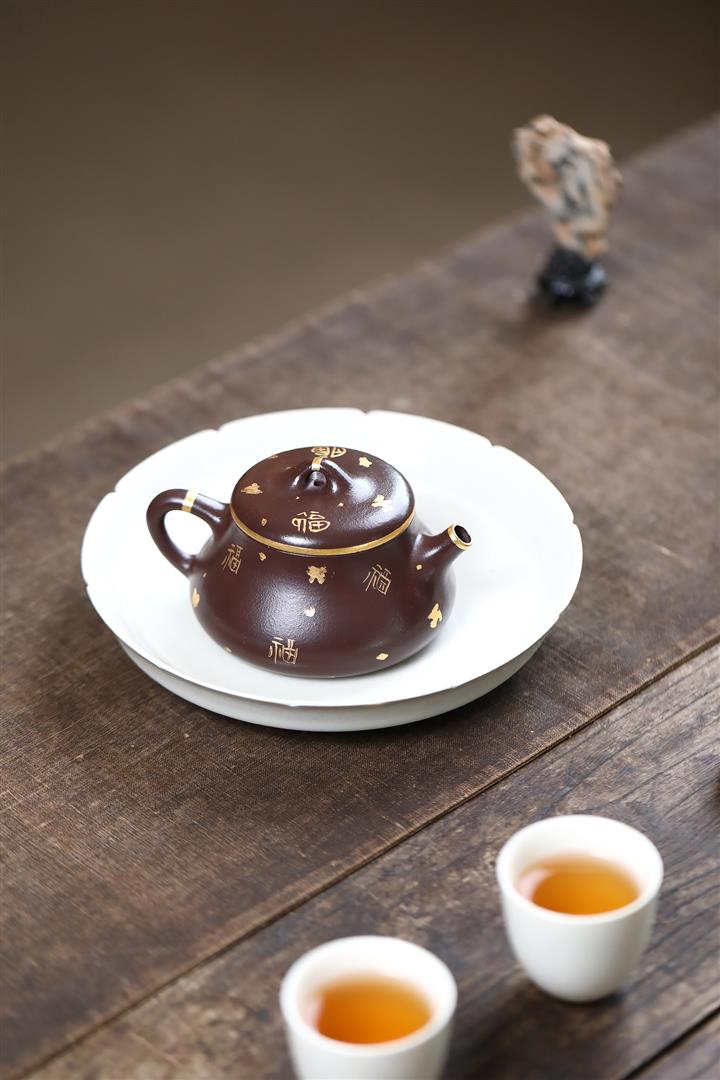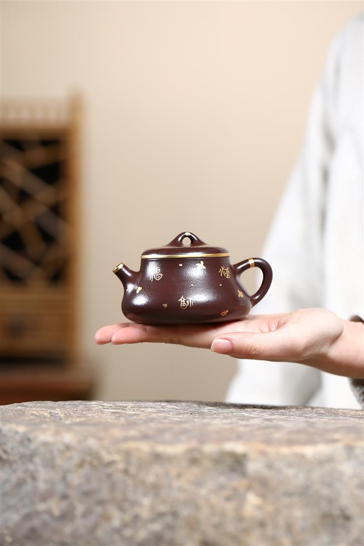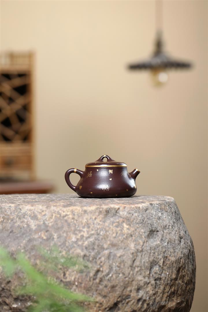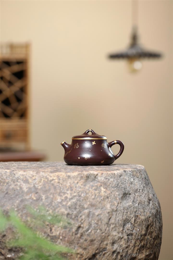 150cc原礦紫泥描金小蘊瓢壹壺兩杯茶壺POT9284