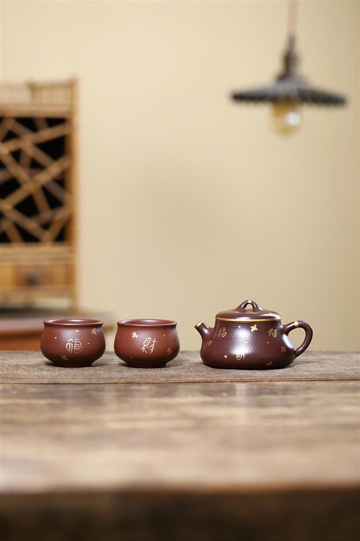 260cc原礦紫泥描金漢鐸壹壺兩杯茶壺POT9285