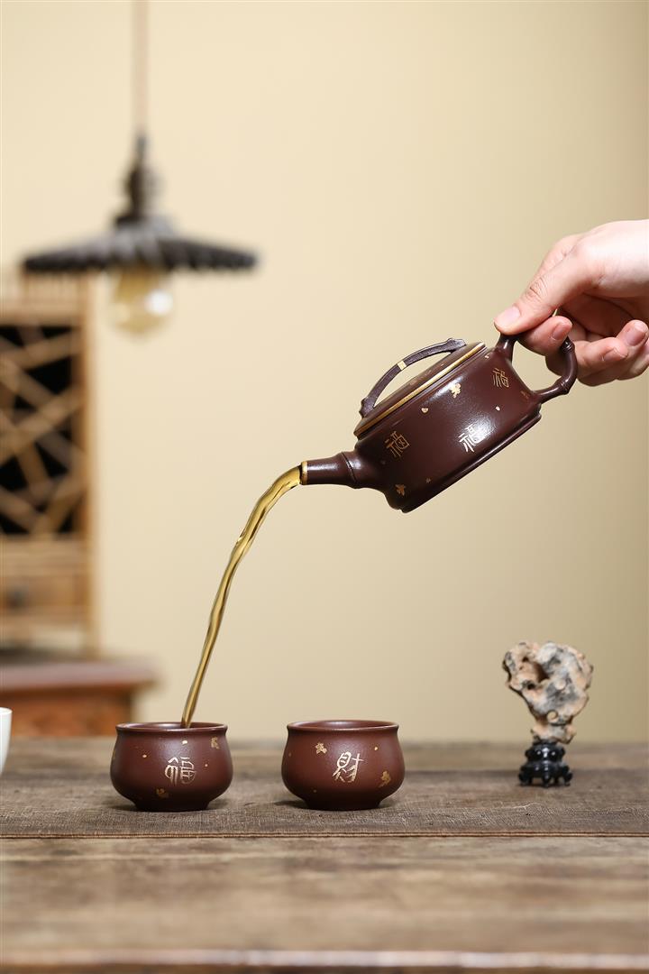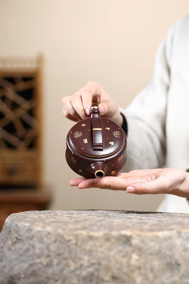 190cc原礦紫泥描金竹節漢瓦壹壺兩杯茶壺POT9286