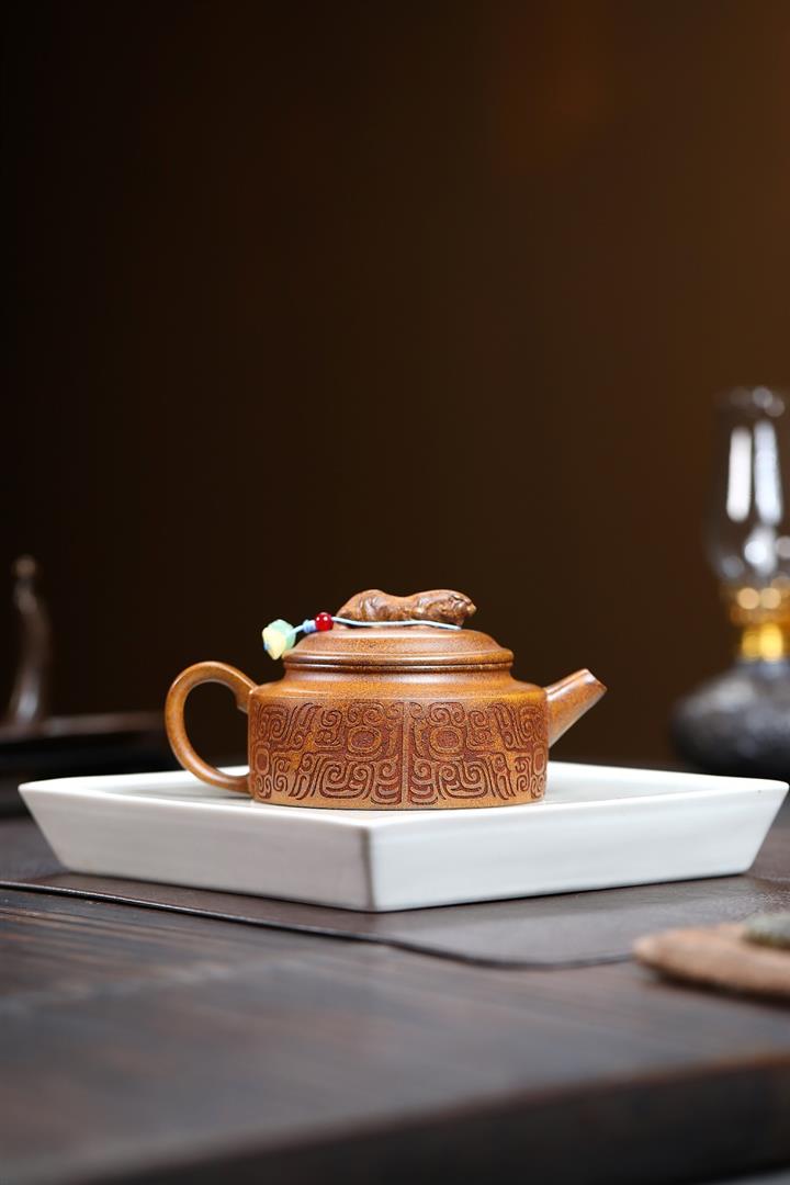 【作品介紹】此款壺形線條流暢,壺把,壺嘴,壺身壹氣呵成栩栩如生,是收藏把玩的好壺,泥料色澤古樸典雅,日久使用,漸露鋒芒,養成變化快,溫潤莊重,用其泡茶,使用的年代久,壺身就溫潤,泡出來的茶湯也就醇郁芳馨。