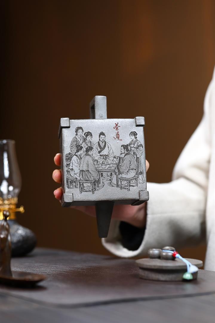 【作品介紹】此款壺形線條流暢,壺把,壺嘴,壺身壹氣呵成栩栩如生,是收藏把玩的好壺,泥料色澤古樸典雅,日久使用,漸露鋒芒,養成變化快,溫潤莊重,用其泡茶,使用的年代久,壺身就溫潤,泡出來的茶湯也就醇郁芳馨。