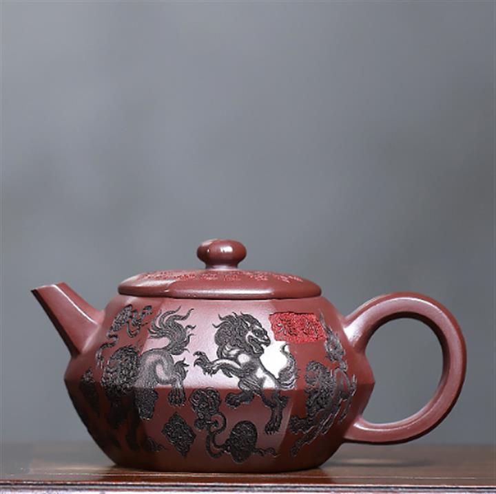 390cc原礦老紫泥六方福獅獻瑞茶壺POT9302