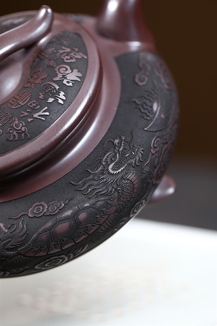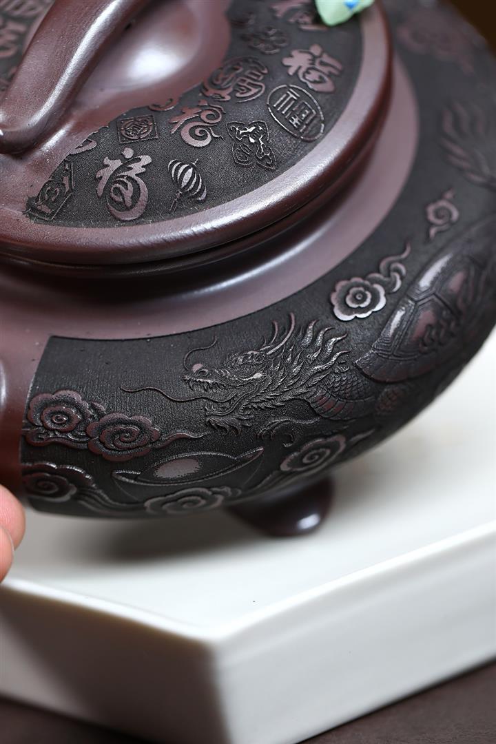 390cc原礦老紫泥六方福獅獻瑞茶壺POT9302