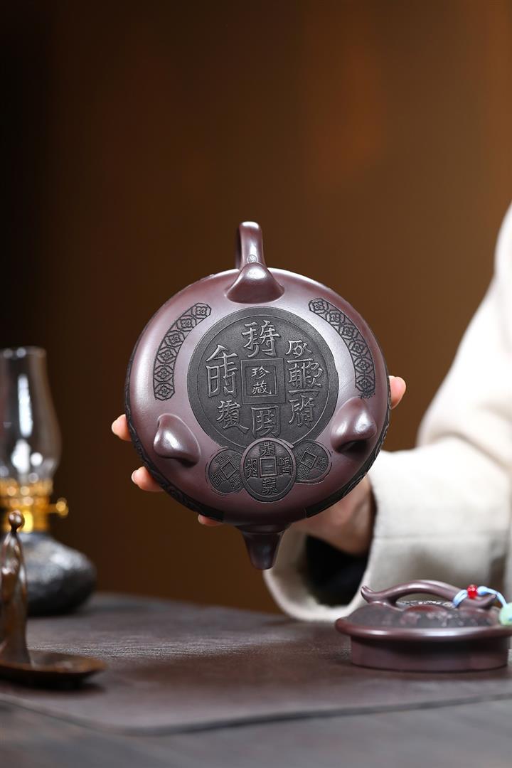 520cc原礦石紅泥福祿雲鼎茶壺POT9294