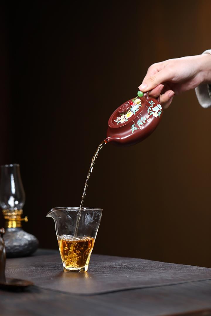 【泥料特點】砂土氣重,似淳實農民,日久使用,漸露鋒芒,養成變化,溫潤莊重。紫砂是壹種雙重氣孔結構的多孔性材質,氣孔微細,密度高。用紫砂壺沏茶,不失原味,且香不渙散,得茶之真香真味。紫砂使用越久,壺身色澤越發光亮照人,氣韻溫雅。紫砂壺長久使用器身會因撫摸擦拭,變得越發溫潤光澤。