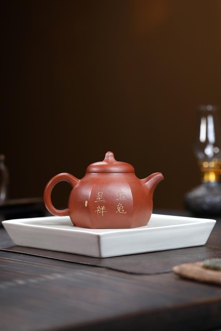280cc原礦紅降坡六方攬月茶壺POT9297