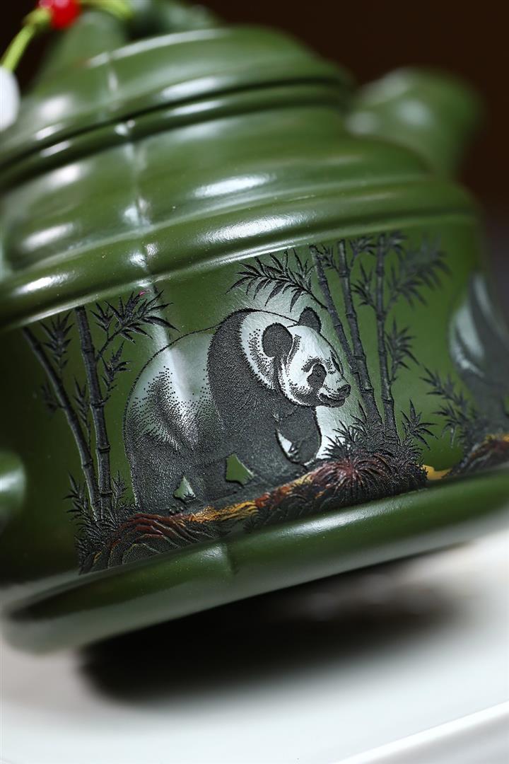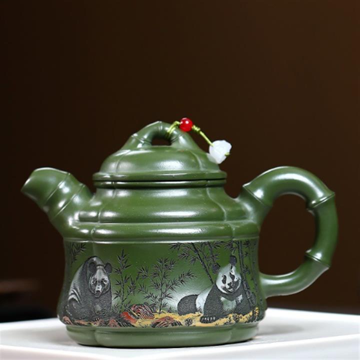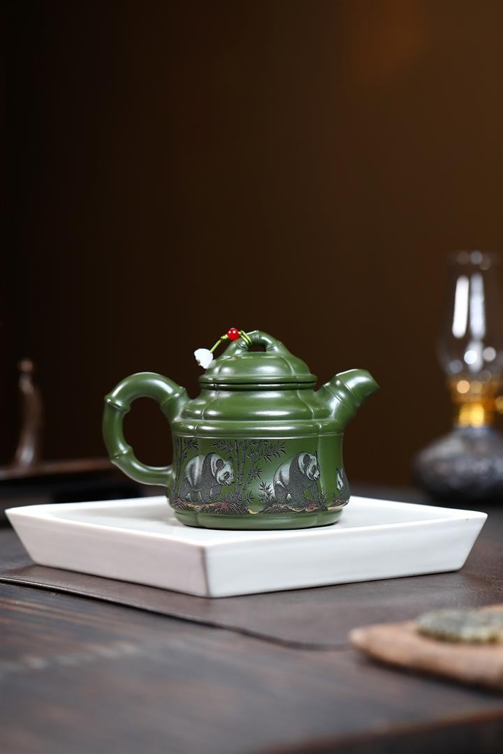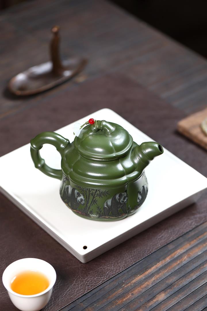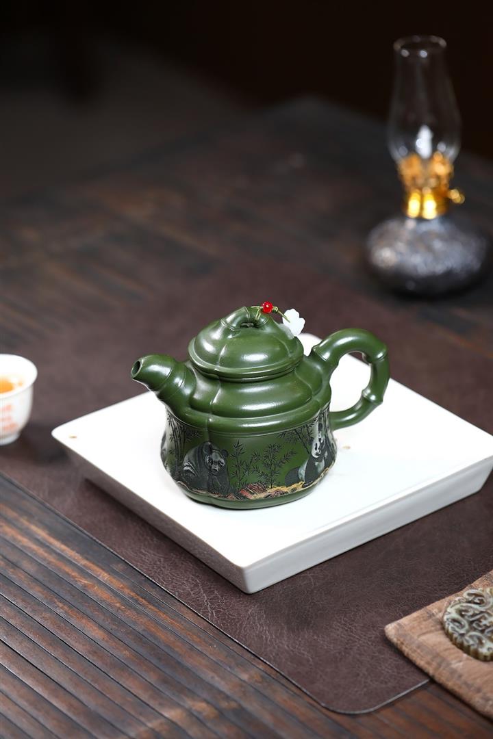310cc原礦優質綠泥竹熊問鼎茶壺POT9298