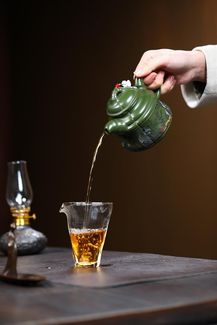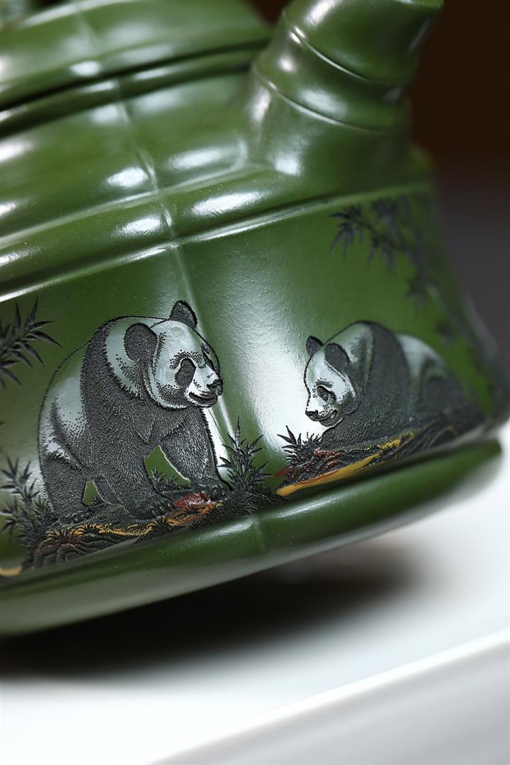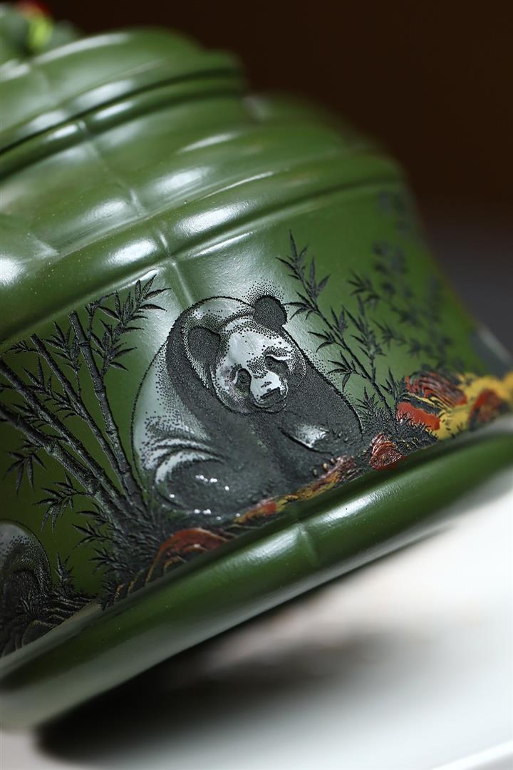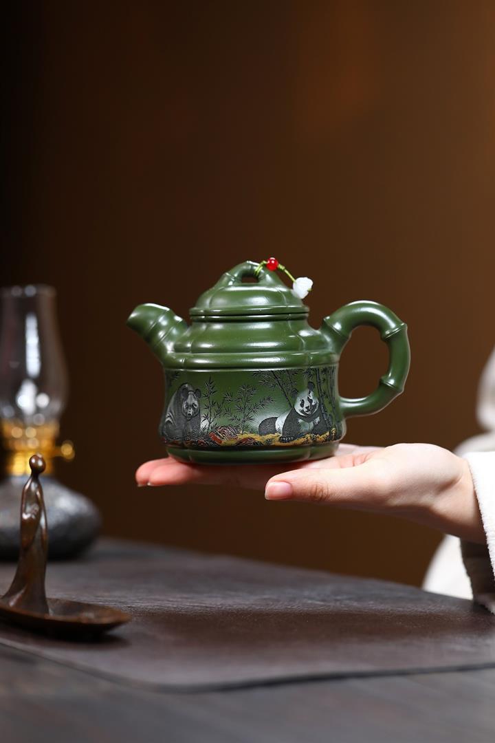 310cc原礦優質綠泥竹熊問鼎茶壺POT9298