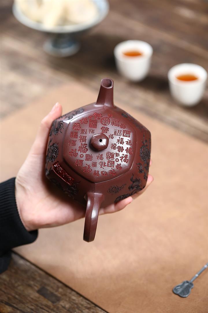 390cc原礦老紫泥六方福獅獻瑞茶壺POT9302