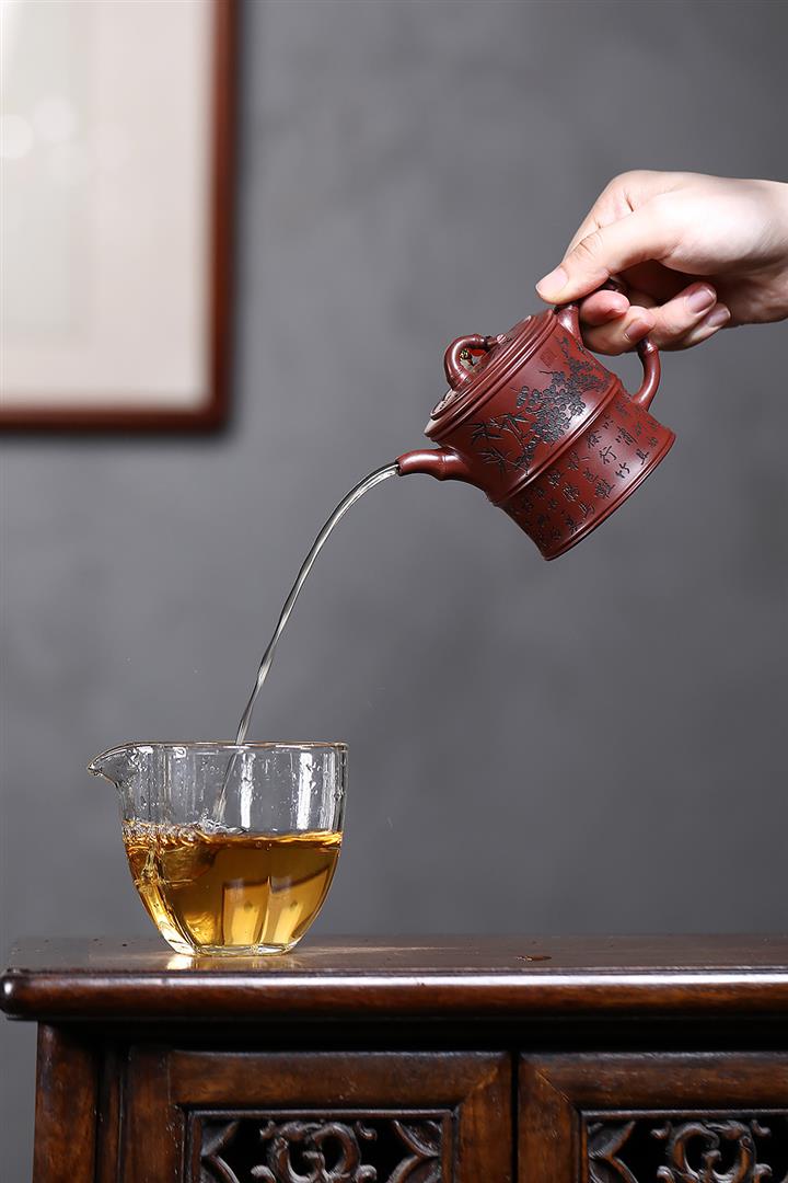 【泥料特點】砂土氣重,似淳實農民,日久使用,漸露鋒芒,養成變化,溫潤莊重。紫砂是壹種雙重氣孔結構的多孔性材質,氣孔微細,密度高。用紫砂壺沏茶,不失原味,且香不渙散,得茶之真香真味。紫砂使用越久,壺身色澤越發光亮照人,氣韻溫雅。紫砂壺長久使用器身會因撫摸擦拭,變得越發溫潤光澤。