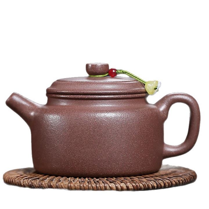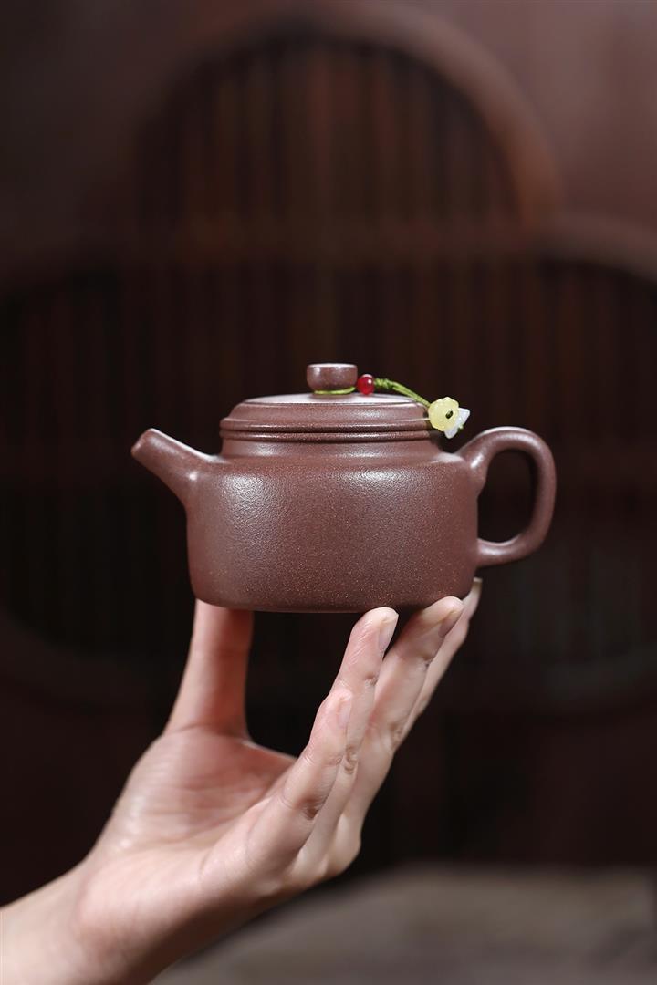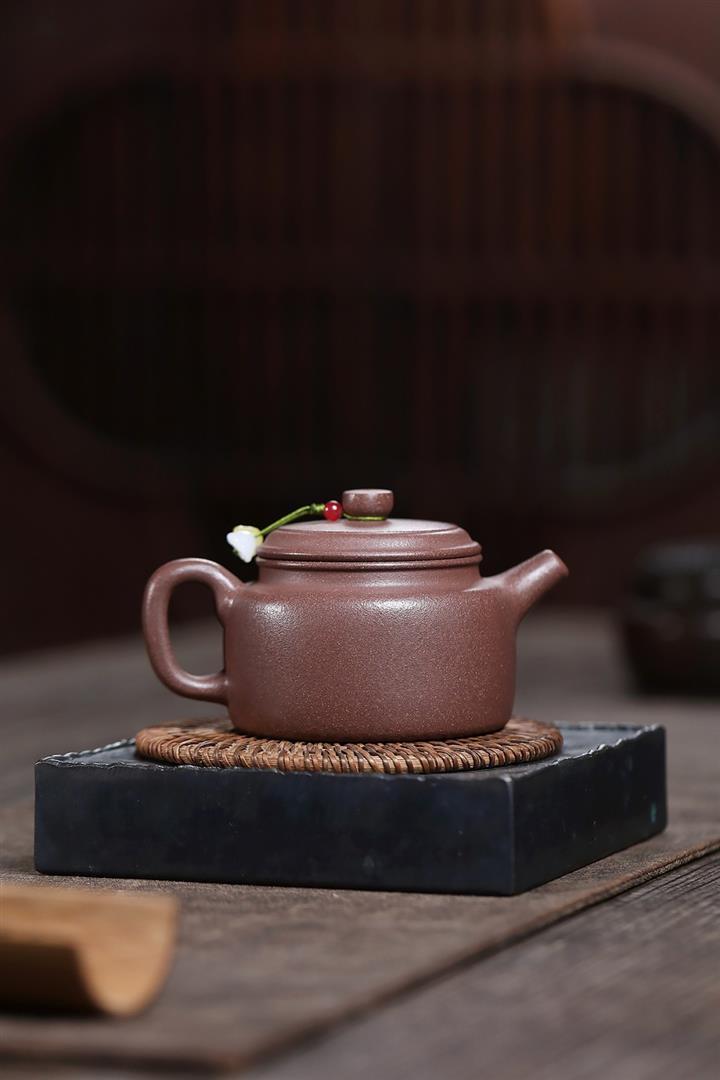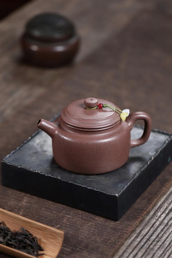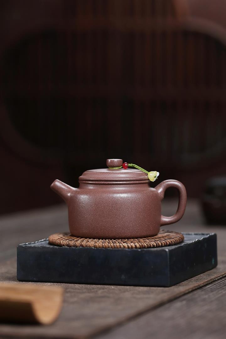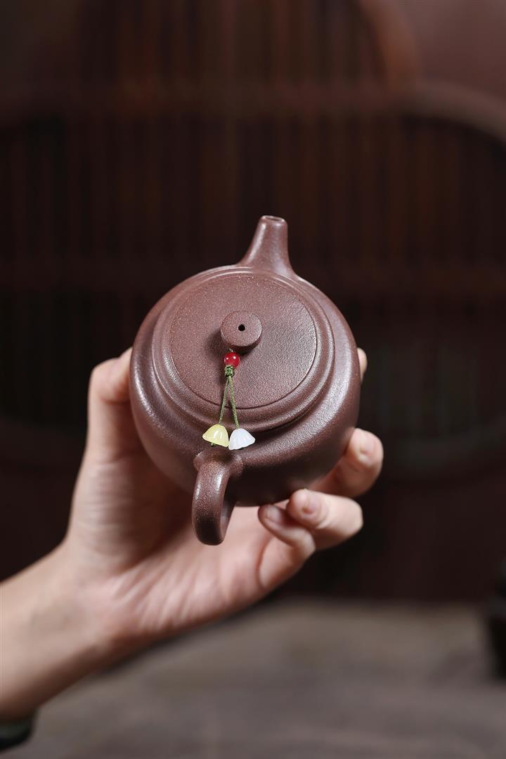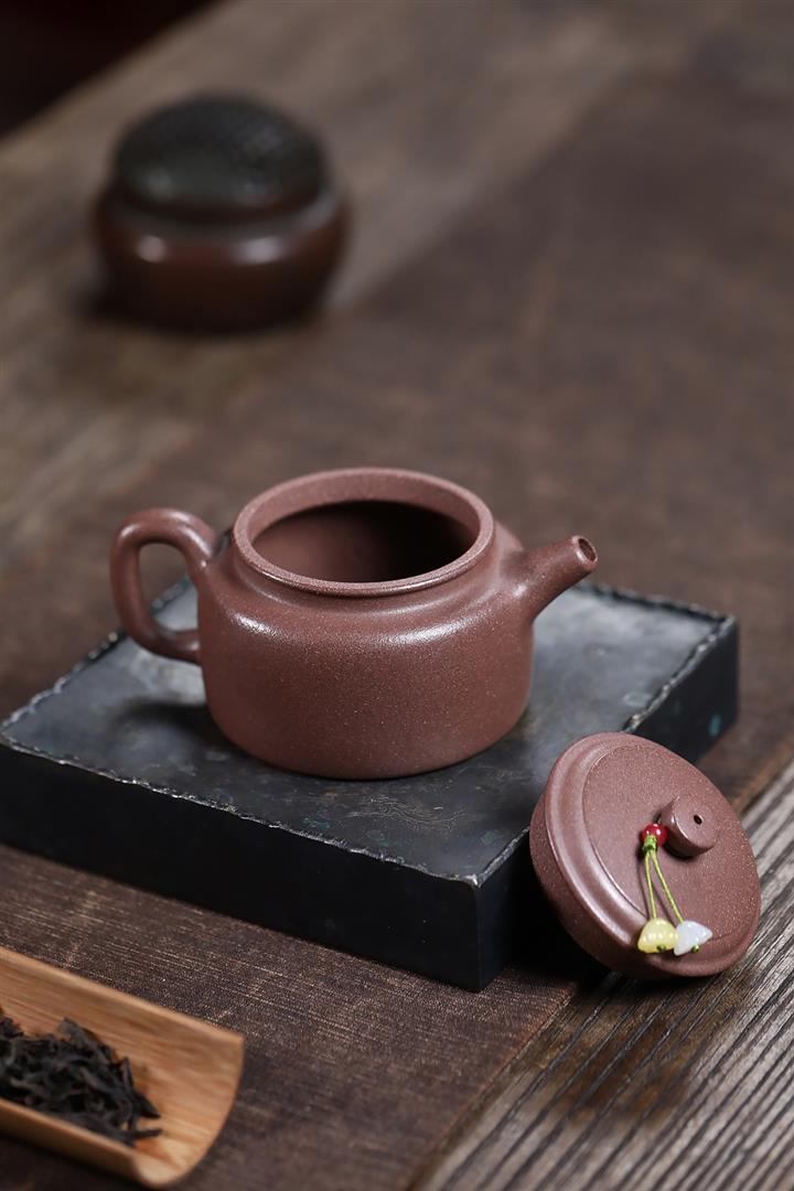 【泥料特點】砂土氣重,似淳實農民,日久使用,漸露鋒芒,養成變化,溫潤莊重。紫砂是壹種雙重氣孔結構的多孔性材質,氣孔微細,密度高。用紫砂壺沏茶,不失原味,且香不渙散,得茶之真香真味。紫砂使用越久,壺身色澤越發光亮照人,氣韻溫雅。紫砂壺長久使用器身會因撫摸擦拭,變得越發溫潤光澤。