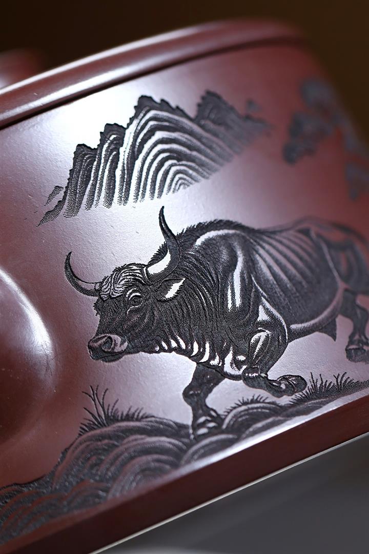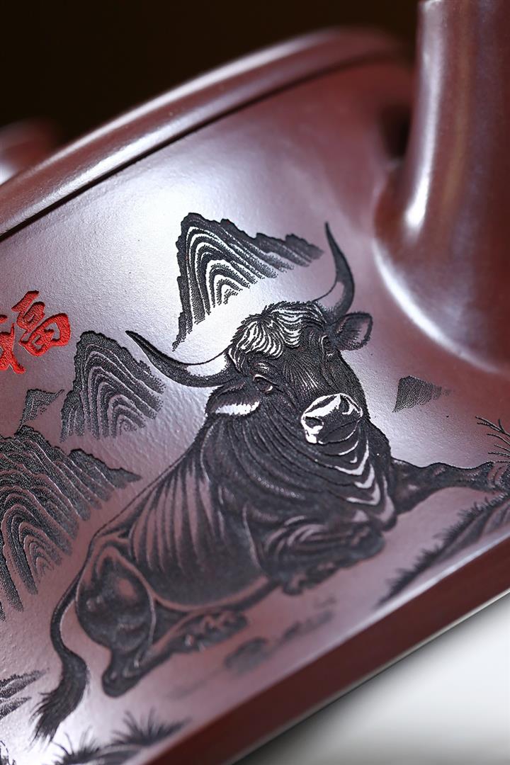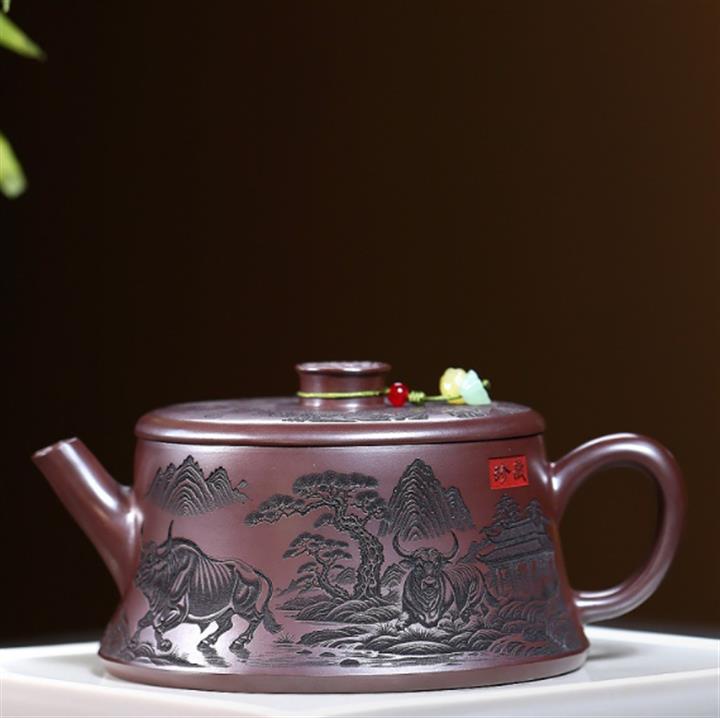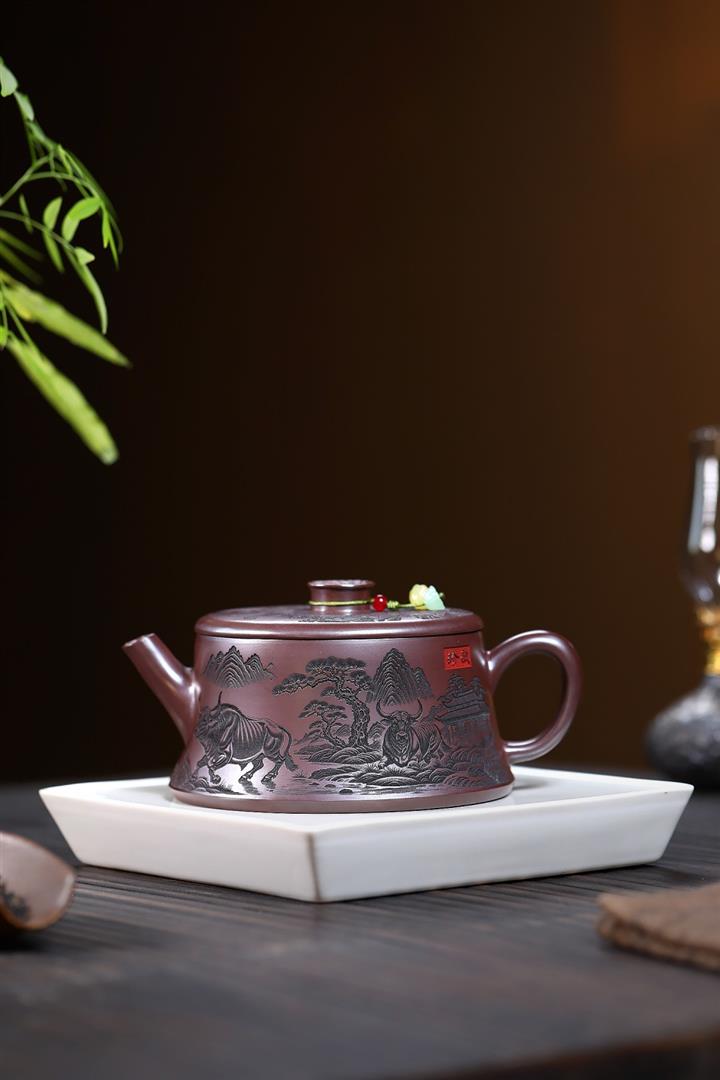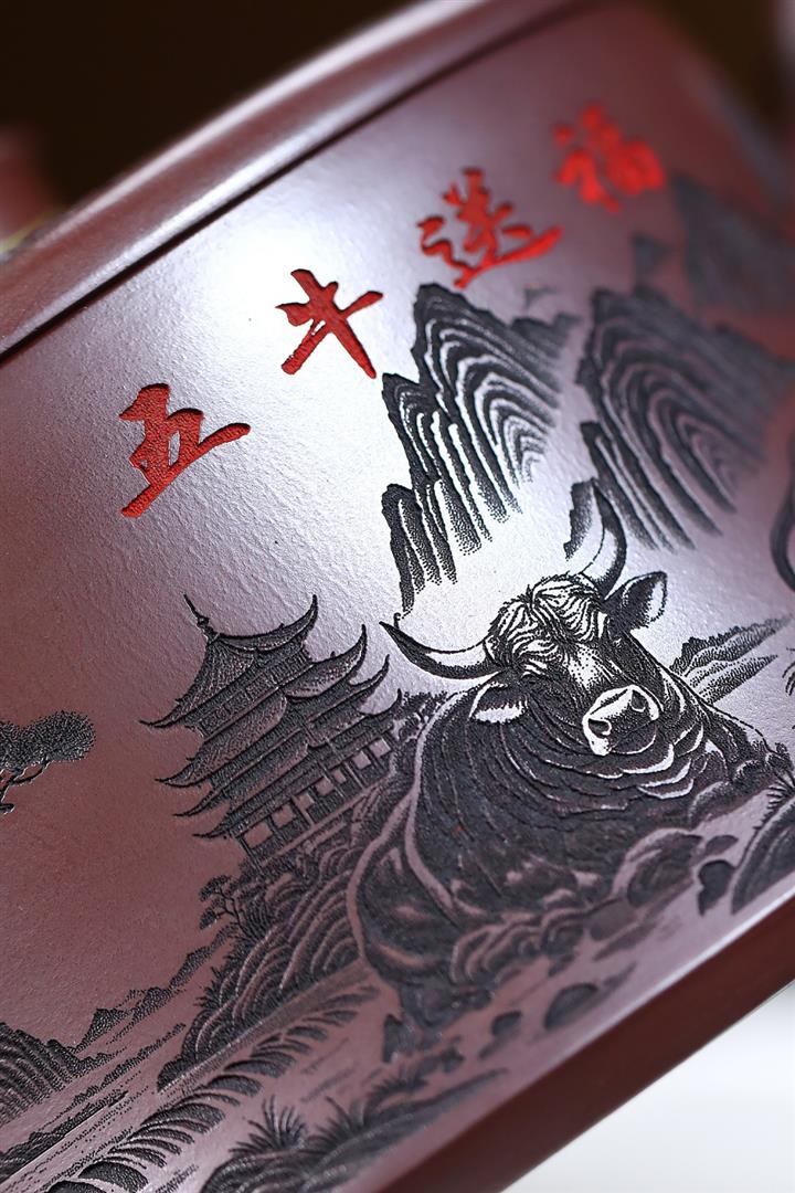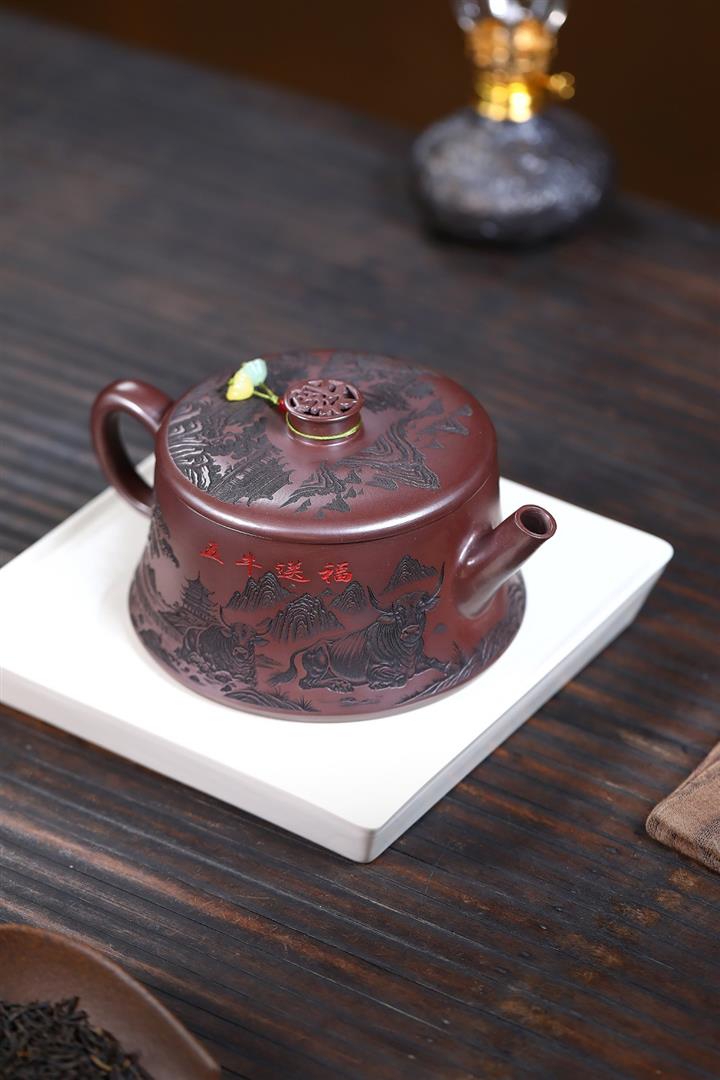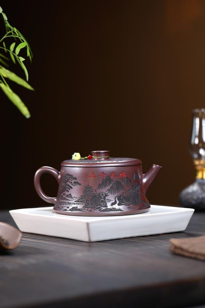 500cc原礦石紅泥五牛柱礎茶壺POT9322