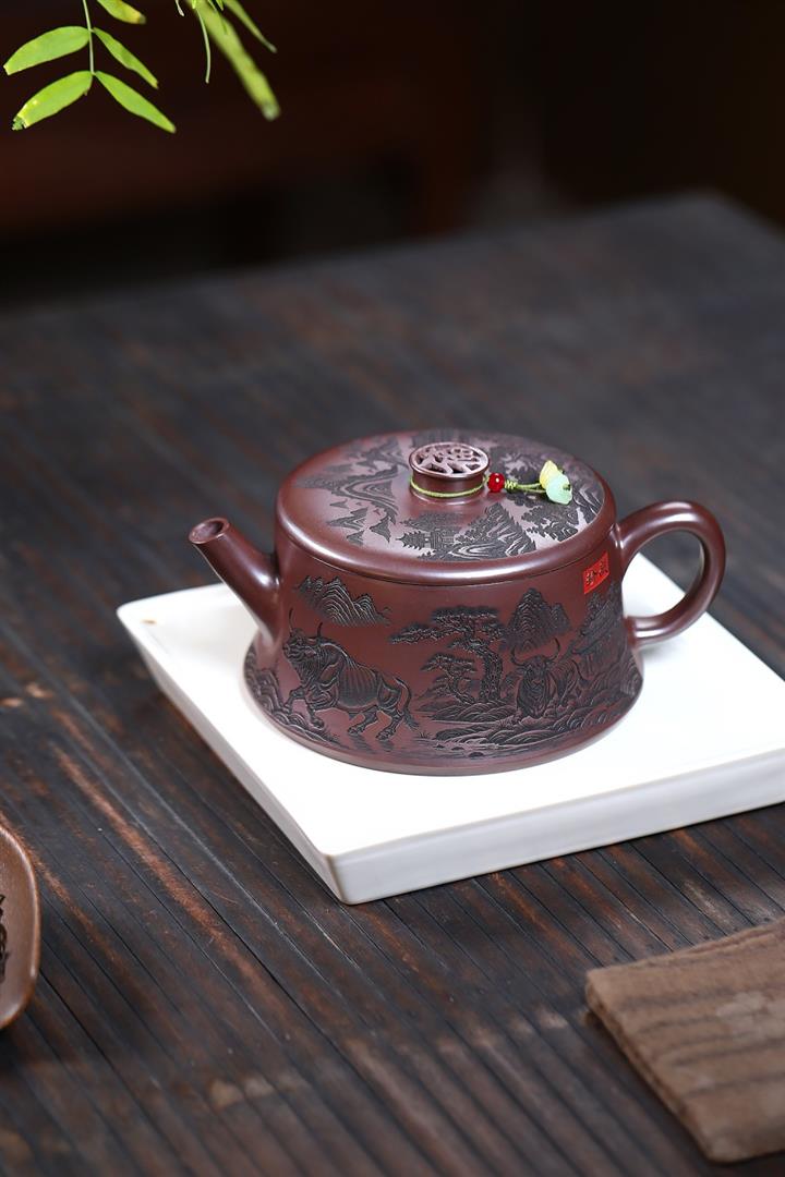 【泥料特點】砂土氣重,似淳實農民,日久使用,漸露鋒芒,養成變化,溫潤莊重。紫砂是壹種雙重氣孔結構的多孔性材質,氣孔微細,密度高。用紫砂壺沏茶,不失原味,且香不渙散,得茶之真香真味。紫砂使用越久,壺身色澤越發光亮照人,氣韻溫雅。紫砂壺長久使用器身會因撫摸擦拭,變得越發溫潤光澤。