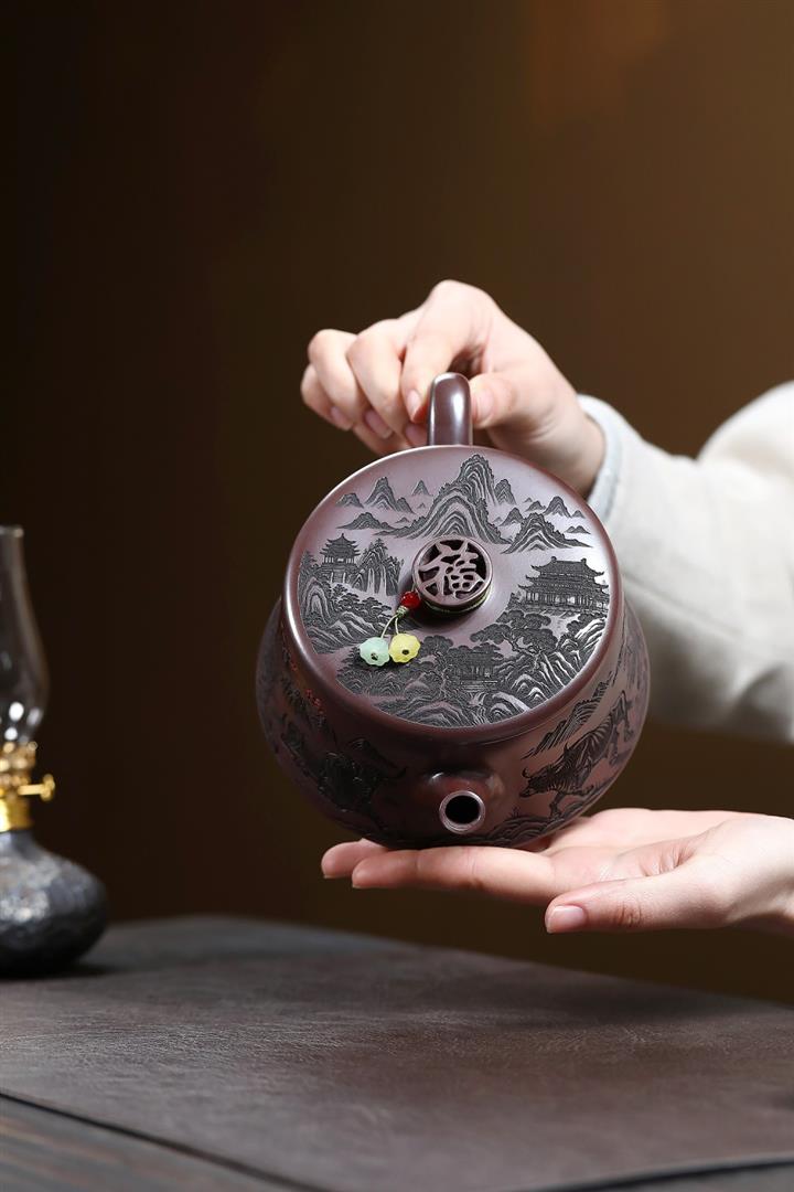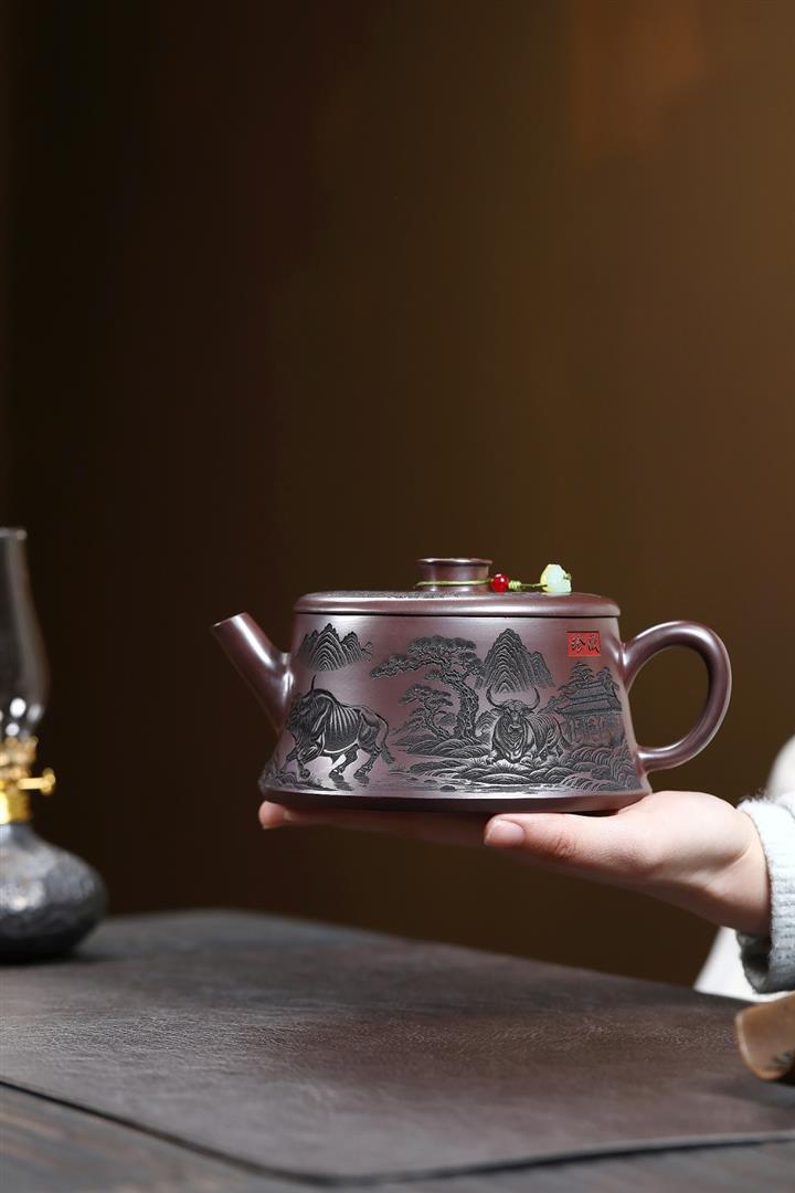 340cc原礦古銅烏泥鐵骨觀山掇只茶壺POT9325