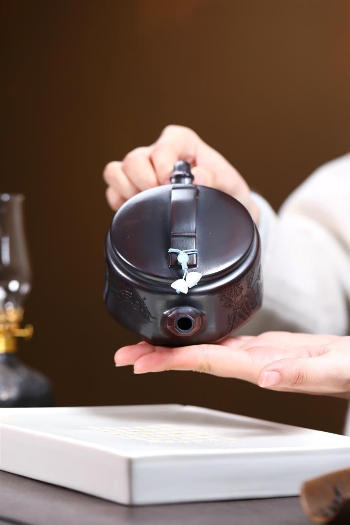 【作品介紹】此款壺形線條流暢,壺把,壺嘴,壺身壹氣呵成栩栩如生,是收藏把玩的好壺,泥料色澤古樸典雅,日久使用,漸露鋒芒,養成變化快,溫潤莊重,用其泡茶,使用的年代久,壺身就溫潤,泡出來的茶湯也就醇郁芳馨。