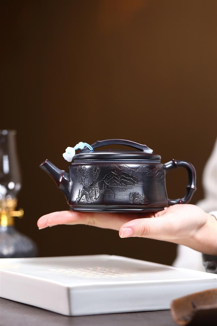 340cc原礦古銅烏泥鐵骨觀山掇只茶壺POT9325