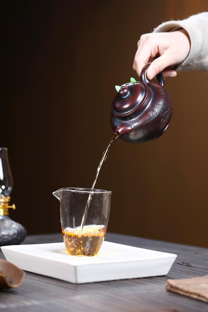 【泥料特點】砂土氣重,似淳實農民,日久使用,漸露鋒芒,養成變化,溫潤莊重。紫砂是壹種雙重氣孔結構的多孔性材質,氣孔微細,密度高。用紫砂壺沏茶,不失原味,且香不渙散,得茶之真香真味。紫砂使用越久,壺身色澤越發光亮照人,氣韻溫雅。紫砂壺長久使用器身會因撫摸擦拭,變得越發溫潤光澤。
