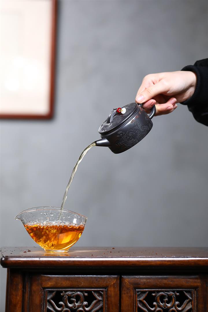 【泥料特點】砂土氣重,似淳實農民,日久使用,漸露鋒芒,養成變化,溫潤莊重。紫砂是壹種雙重氣孔結構的多孔性材質,氣孔微細,密度高。用紫砂壺沏茶,不失原味,且香不渙散,得茶之真香真味。紫砂使用越久,壺身色澤越發光亮照人,氣韻溫雅。紫砂壺長久使用器身會因撫摸擦拭,變得越發溫潤光澤。