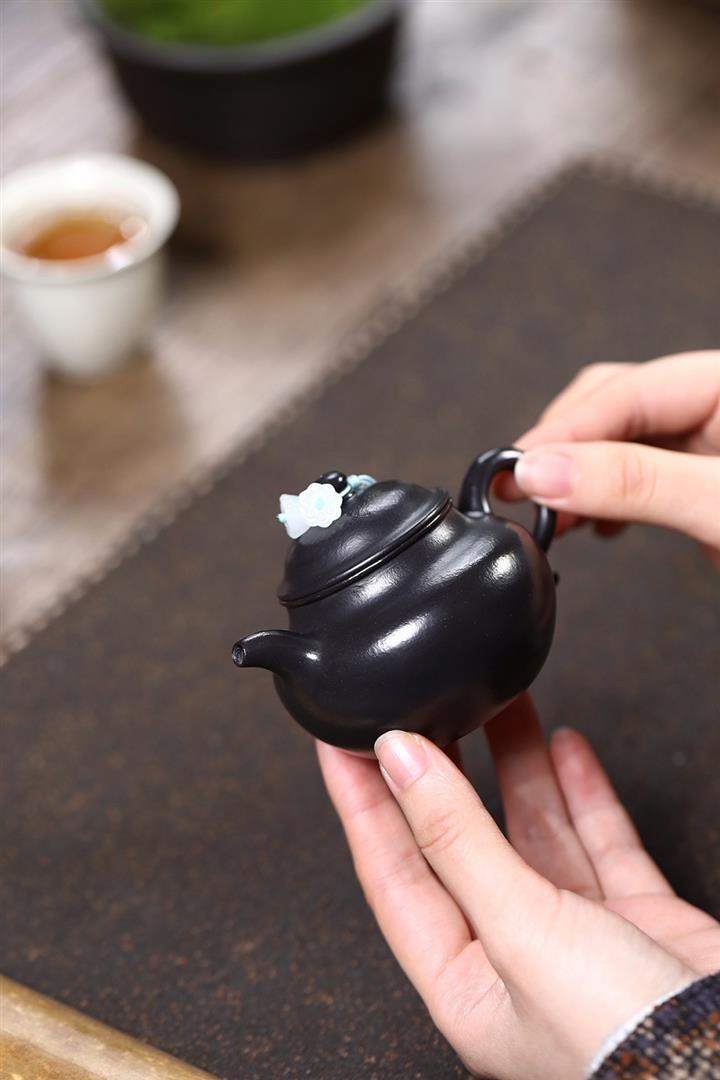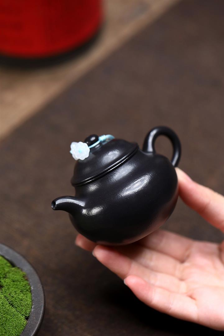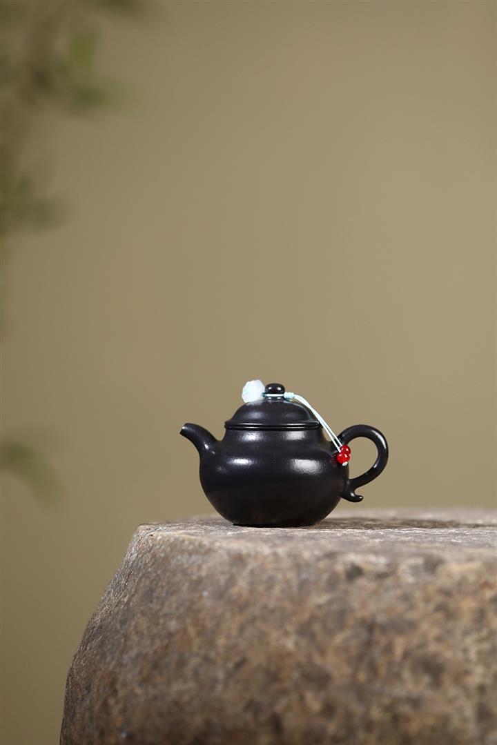 270cc原礦黑料石紅獅球泡茶壺POT9336