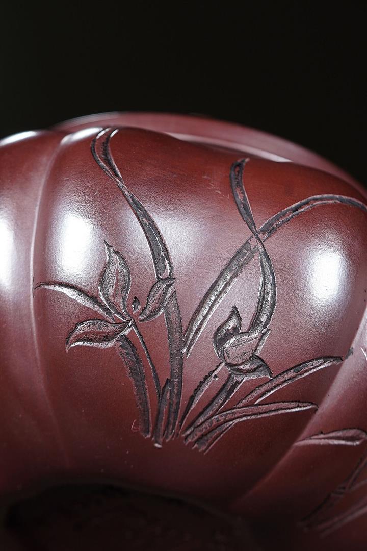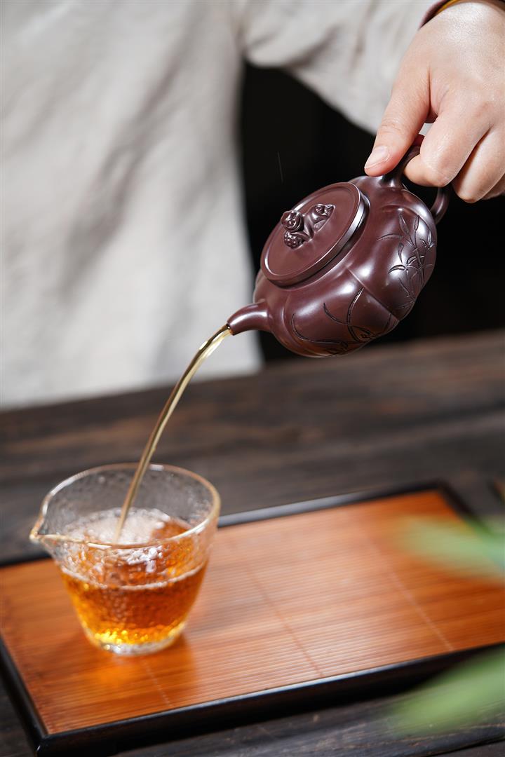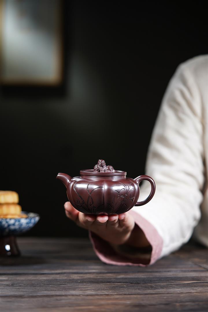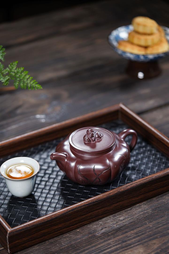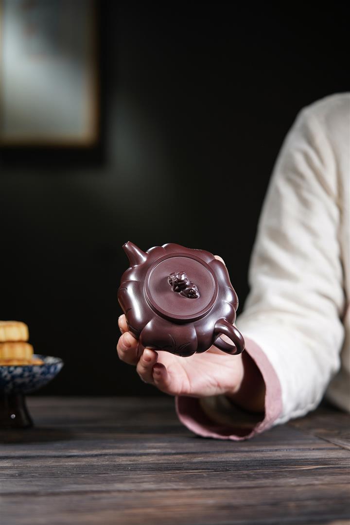 【泥料特點】砂土氣重,似淳實農民,日久使用,漸露鋒芒,養成變化,溫潤莊重。紫砂是壹種雙重氣孔結構的多孔性材質,氣孔微細,密度高。用紫砂壺沏茶,不失原味,且香不渙散,得茶之真香真味。紫砂使用越久,壺身色澤越發光亮照人,氣韻溫雅。紫砂壺長久使用器身會因撫摸擦拭,變得越發溫潤光澤。