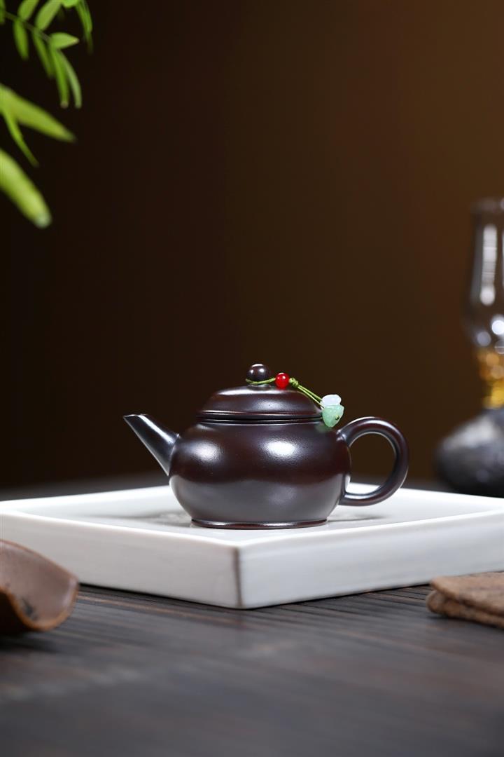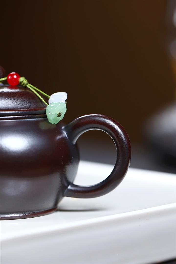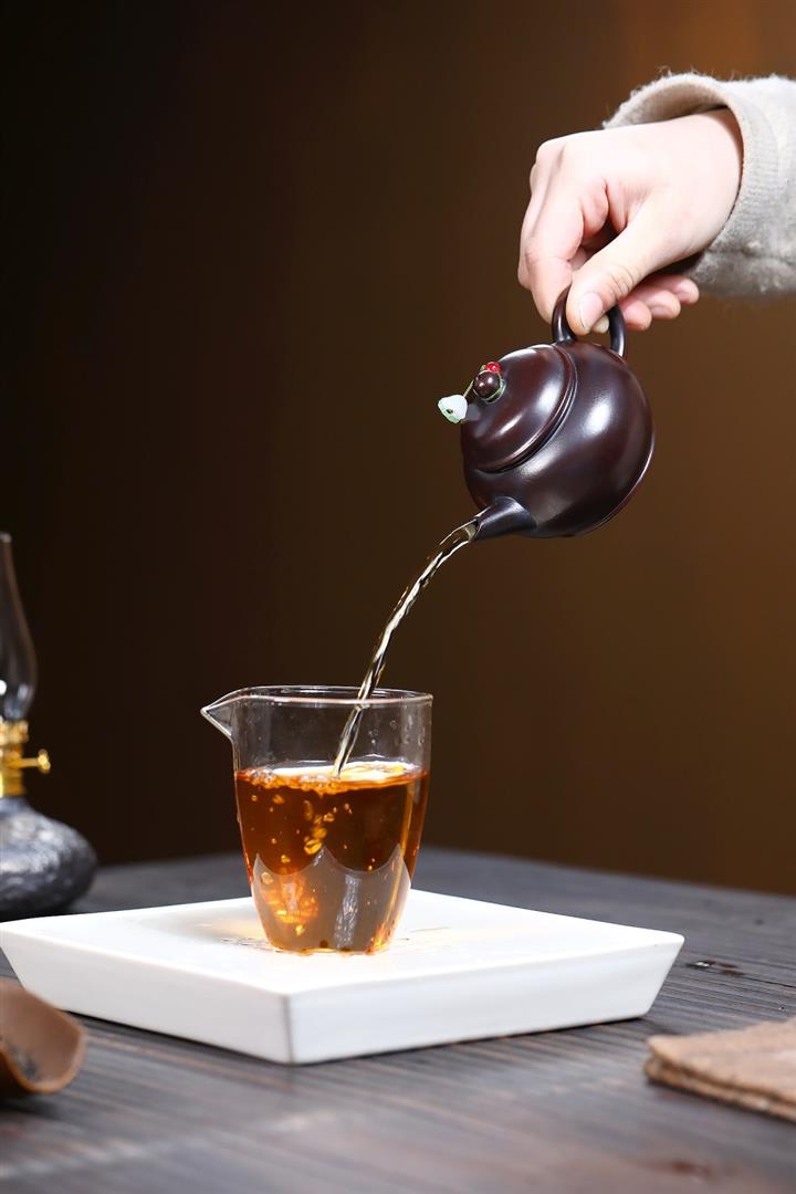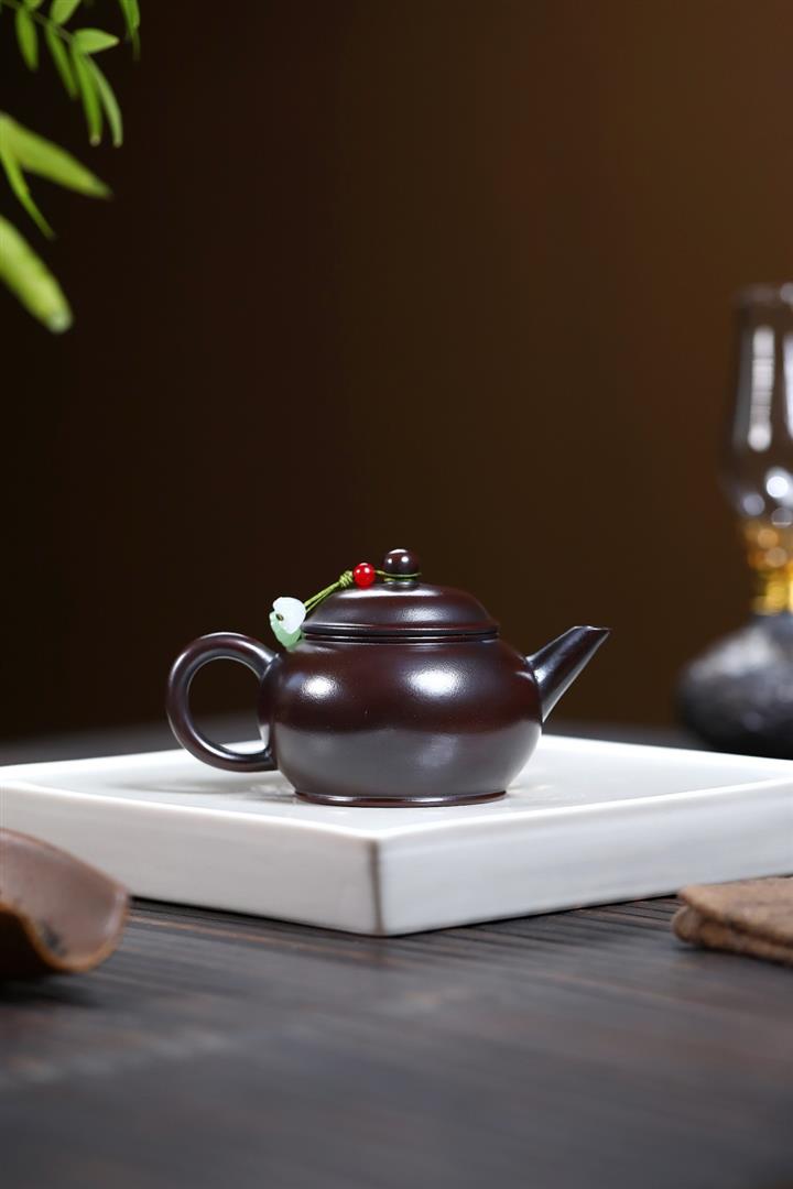 【泥料特點】砂土氣重,似淳實農民,日久使用,漸露鋒芒,養成變化,溫潤莊重。紫砂是壹種雙重氣孔結構的多孔性材質,氣孔微細,密度高。用紫砂壺沏茶,不失原味,且香不渙散,得茶之真香真味。紫砂使用越久,壺身色澤越發光亮照人,氣韻溫雅。紫砂壺長久使用器身會因撫摸擦拭,變得越發溫潤光澤。