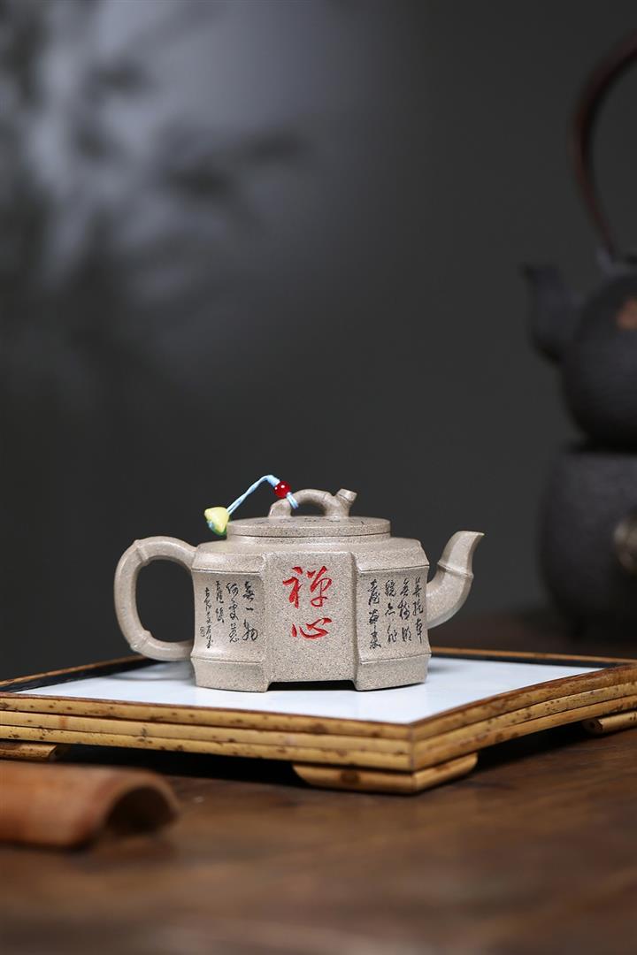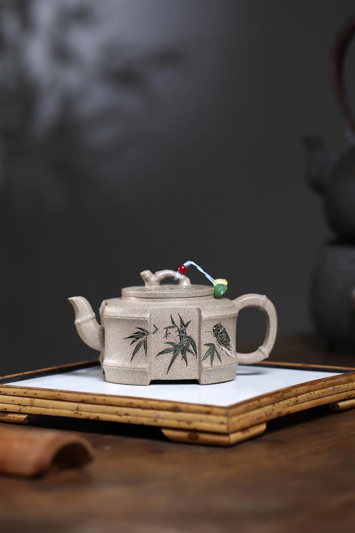 250cc原礦白段泥方器竹蟬問禪茶壺POT9347