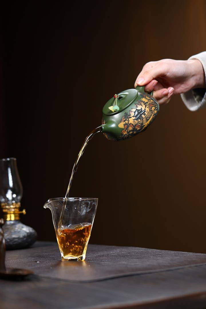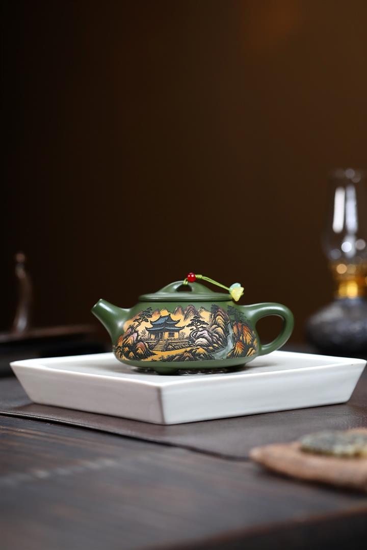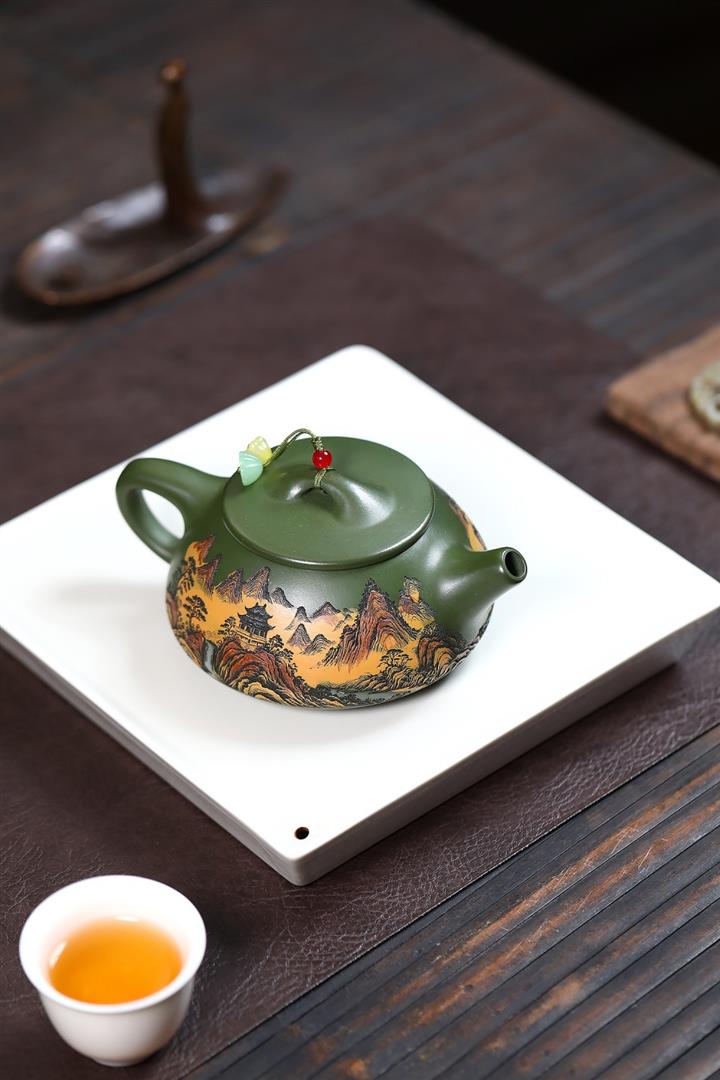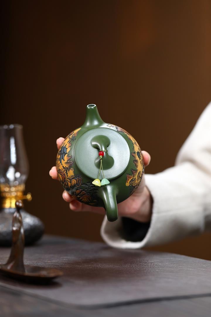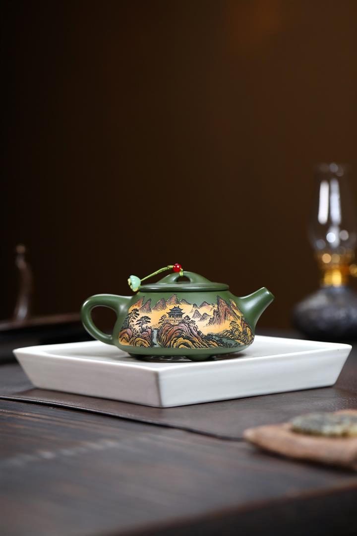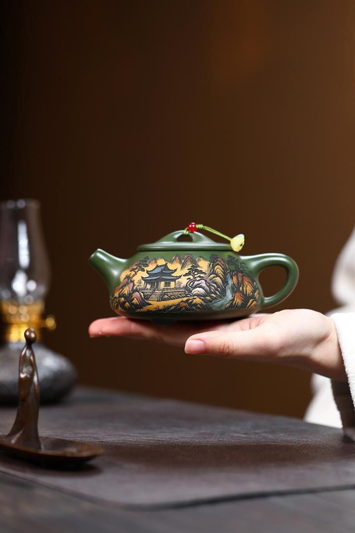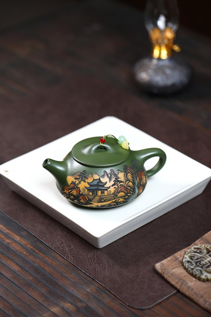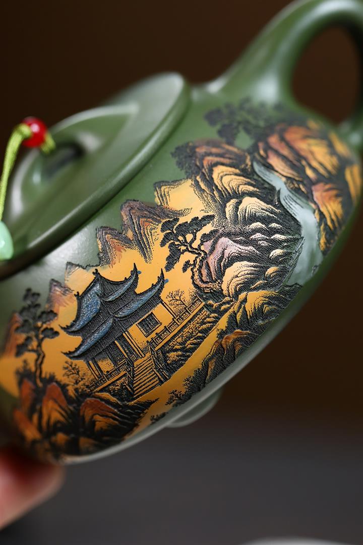 230cc原礦優質綠泥彩秀山河泡茶壺POT9350