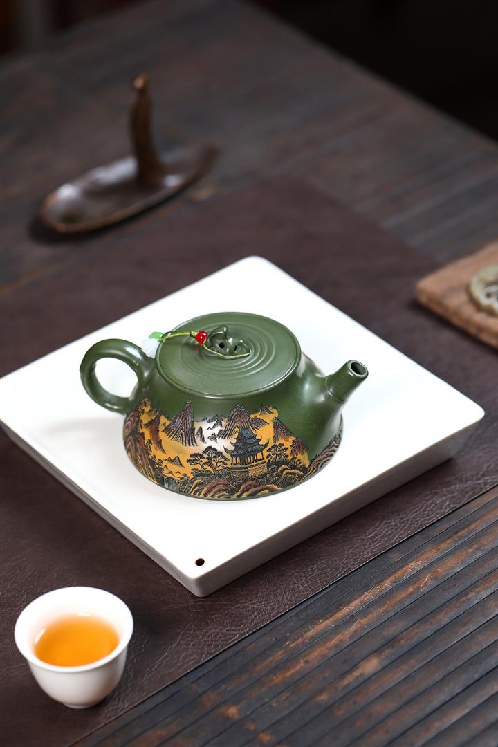 230cc原礦優質綠泥彩秀山河泡茶壺POT9350
