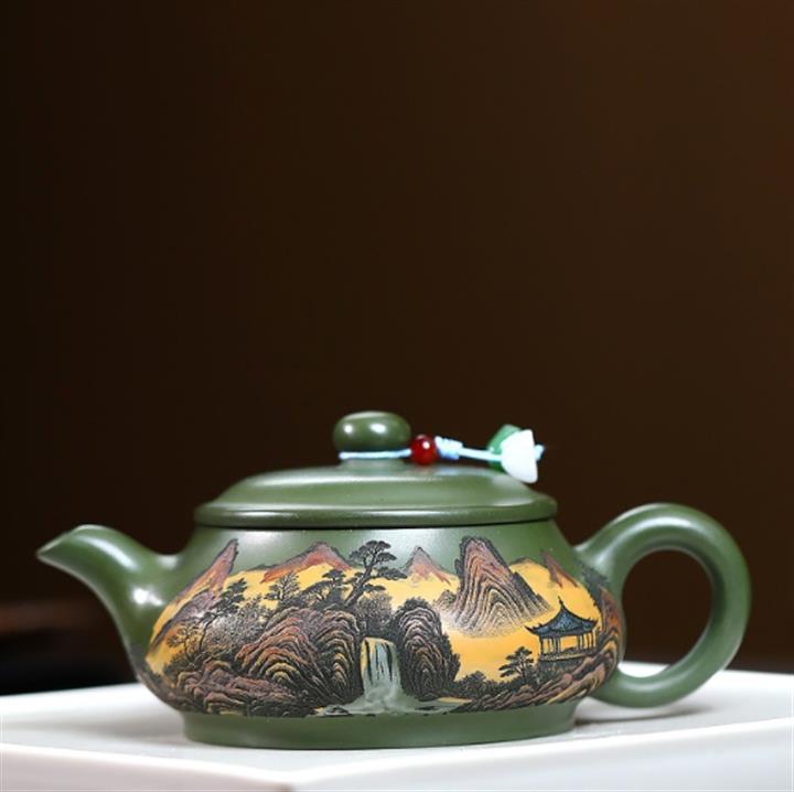 230cc原礦優質綠泥錦繡寒江泡茶壺POT9368