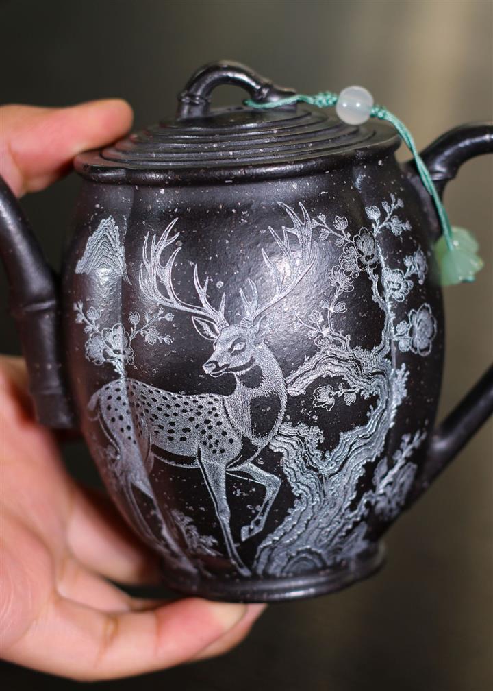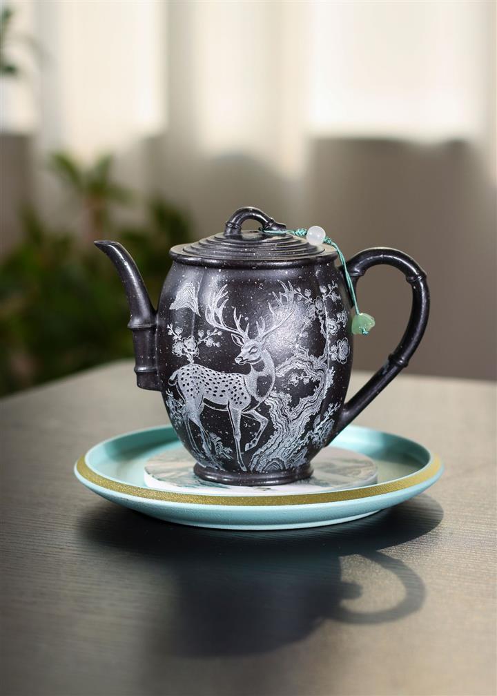 170cc原礦翡翠綠泥清風竹韻泡茶壺POT9366