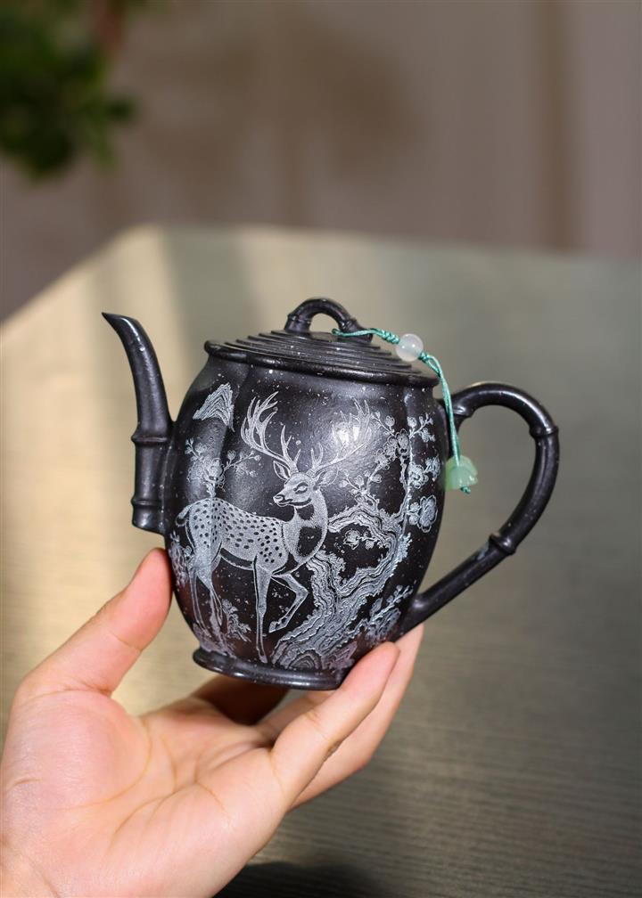 280cc原礦玄鐵石黃駿馬柱礎泡茶壺POT9361