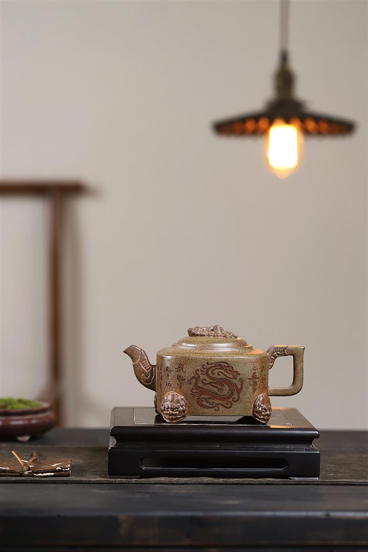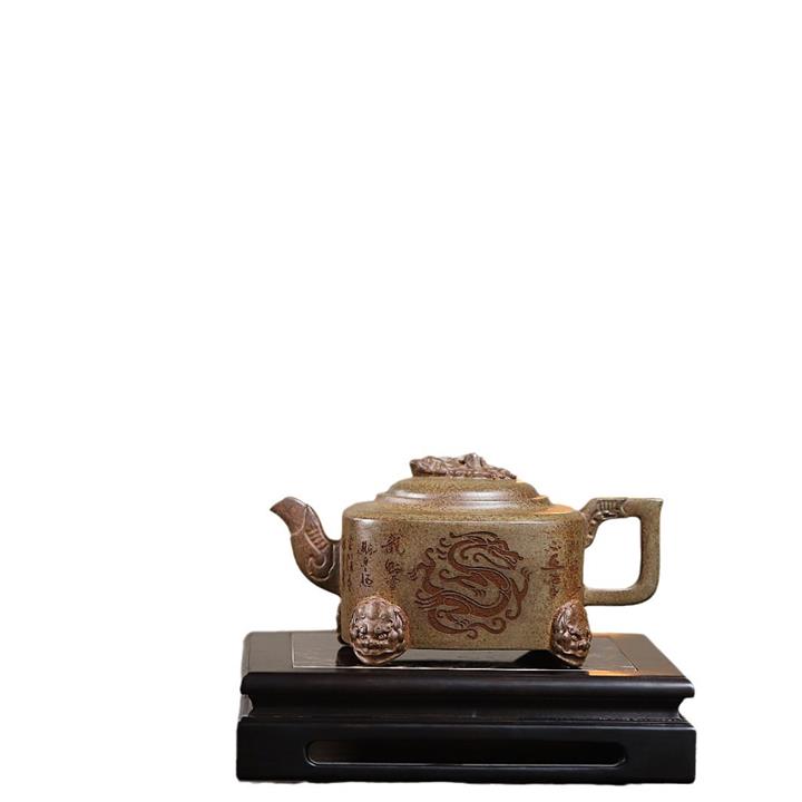 400cc原礦紫砂特高溫柴燒四足龍尊茶壺POT9365