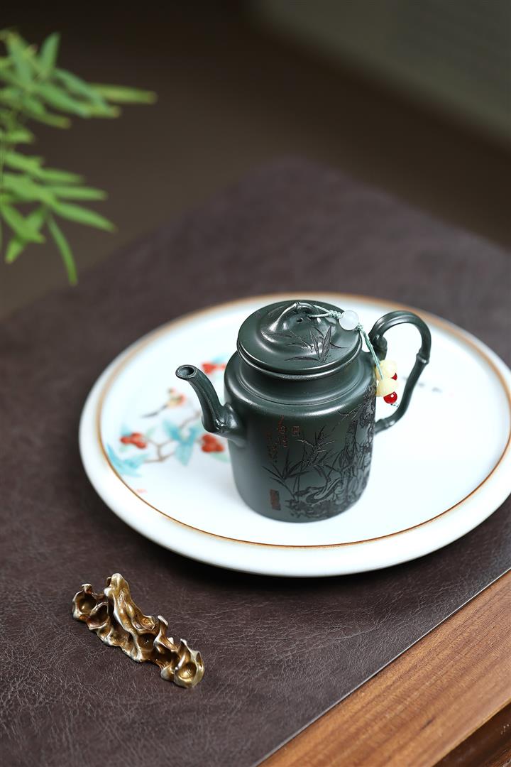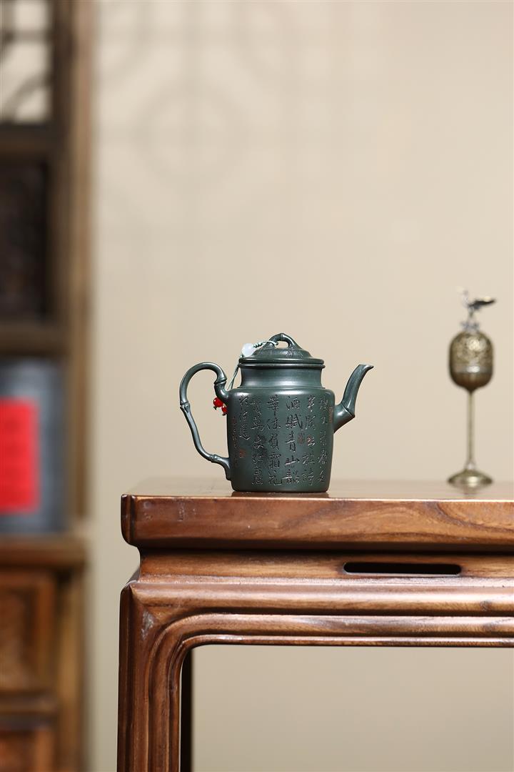 170cc原礦翡翠綠泥清風竹韻泡茶壺POT9366