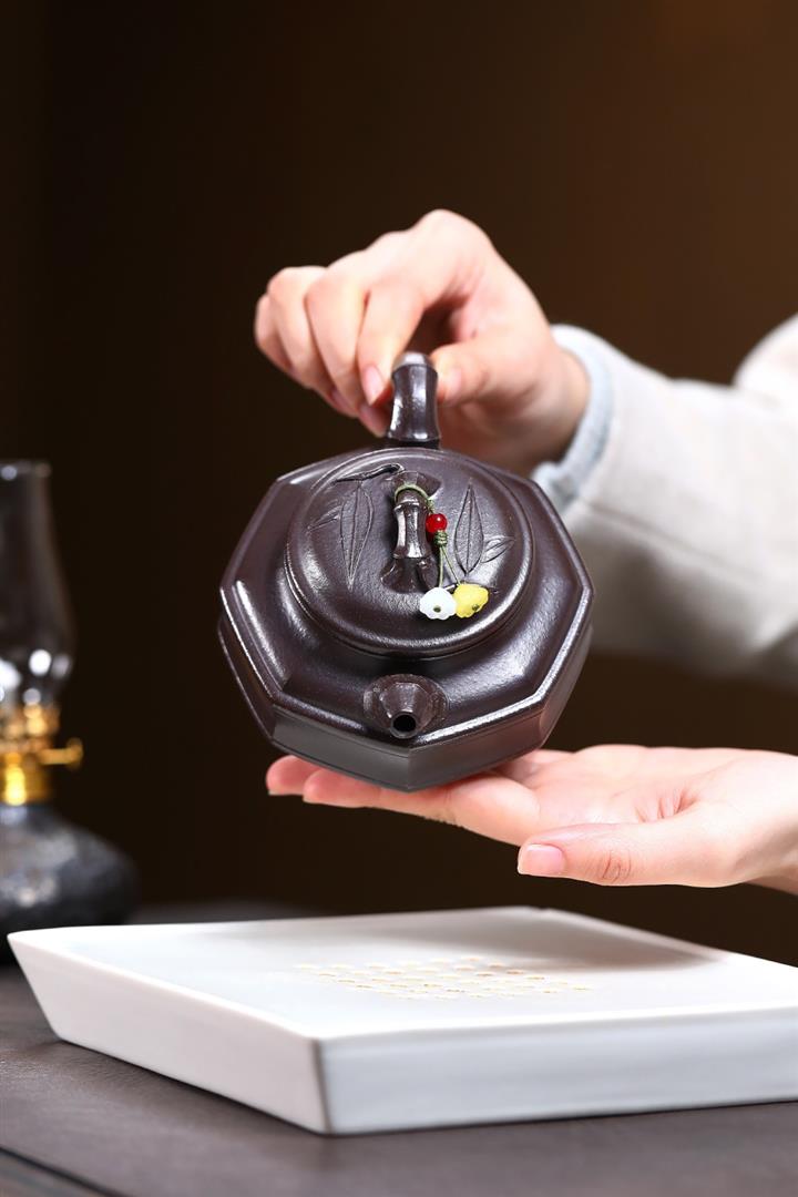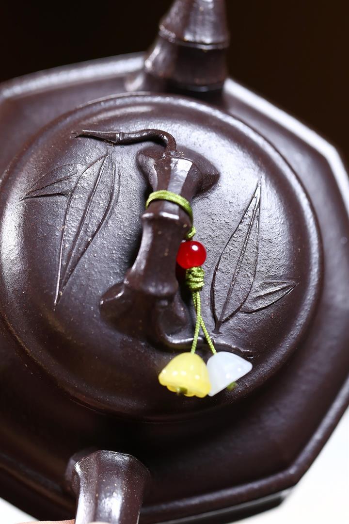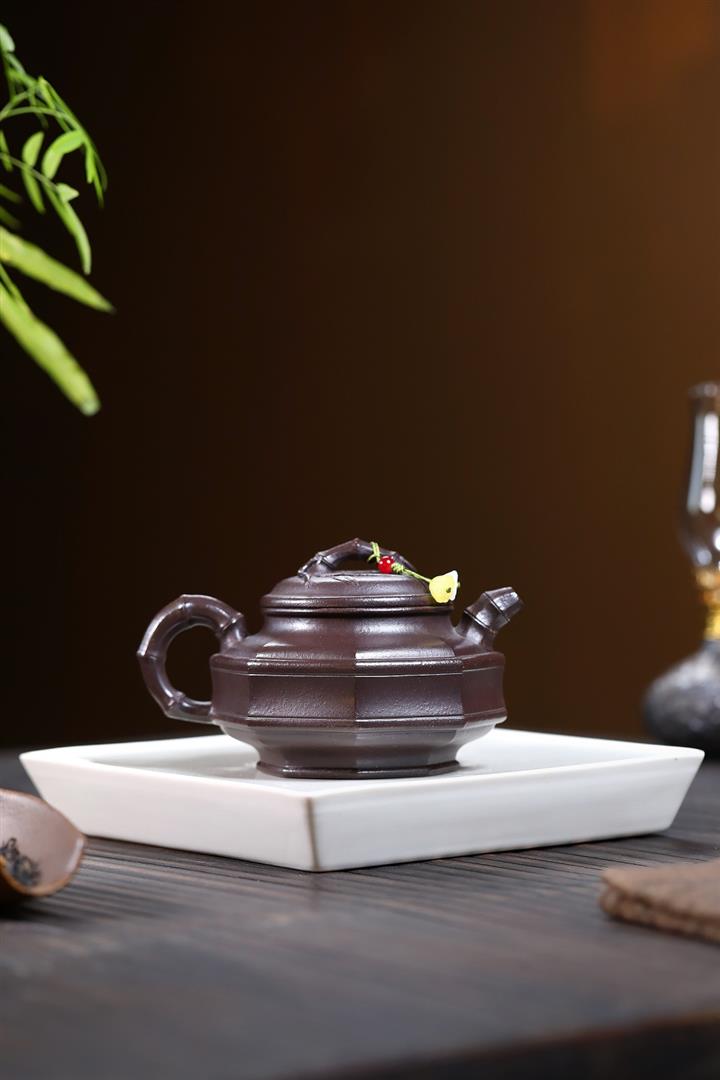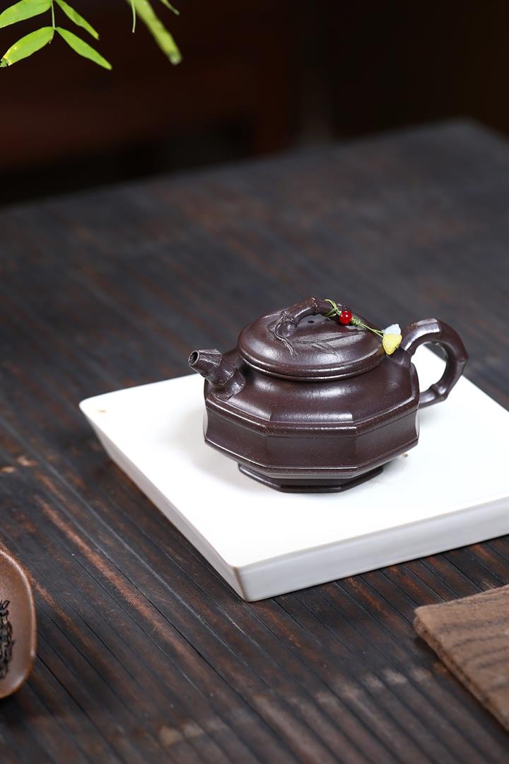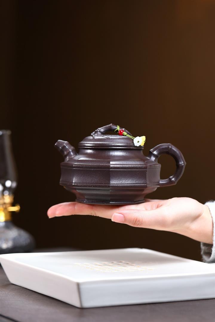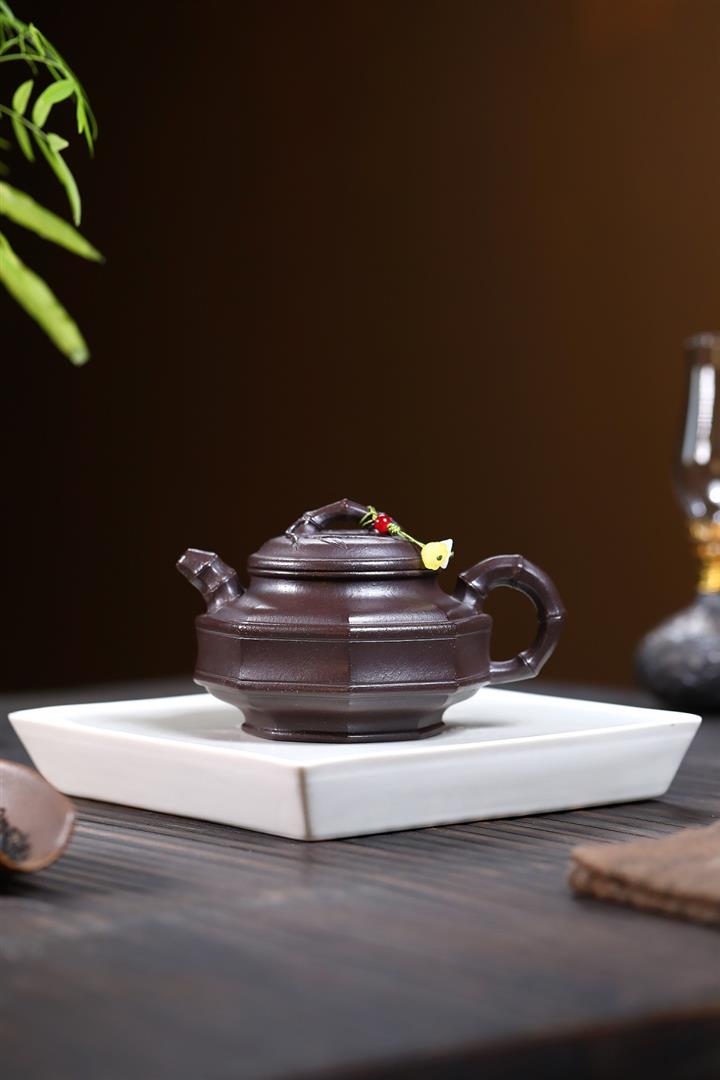 250cc原礦紅降坡虛懷竹影竹鼎泡茶壺POT9383