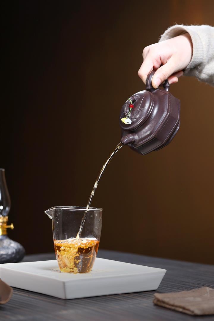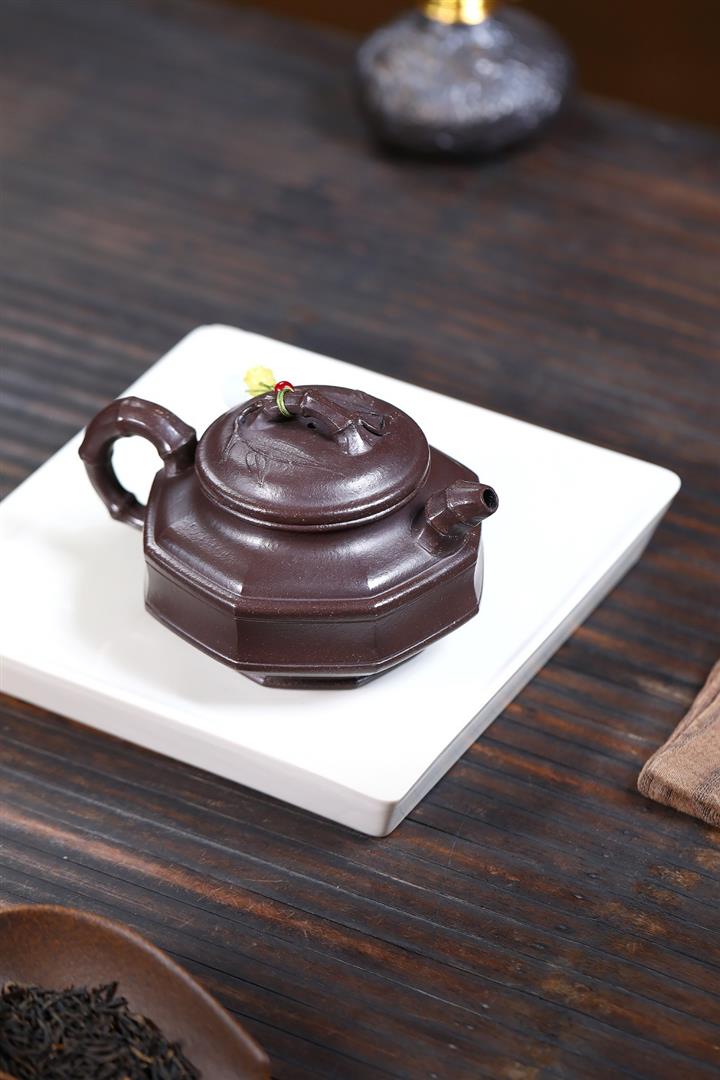 【泥料特點】砂土氣重,似淳實農民,日久使用,漸露鋒芒,養成變化,溫潤莊重。紫砂是壹種雙重氣孔結構的多孔性材質,氣孔微細,密度高。用紫砂壺沏茶,不失原味,且香不渙散,得茶之真香真味。紫砂使用越久,壺身色澤越發光亮照人,氣韻溫雅。紫砂壺長久使用器身會因撫摸擦拭,變得越發溫潤光澤。