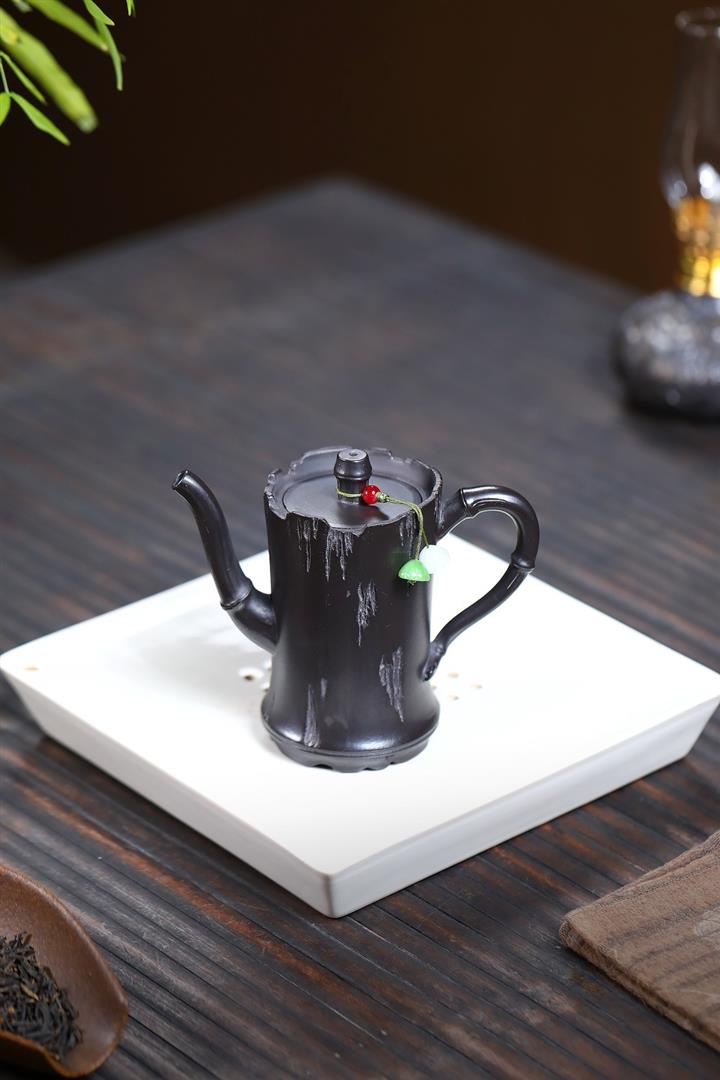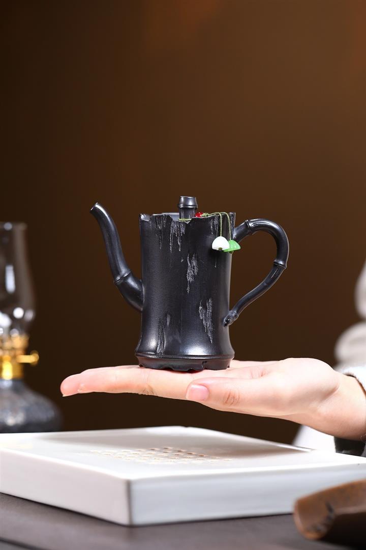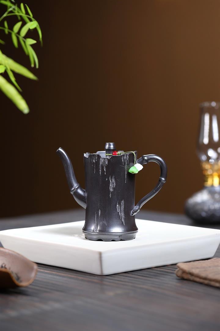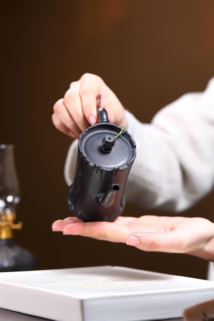 250cc原礦紅降坡虛懷竹影竹鼎泡茶壺POT9383