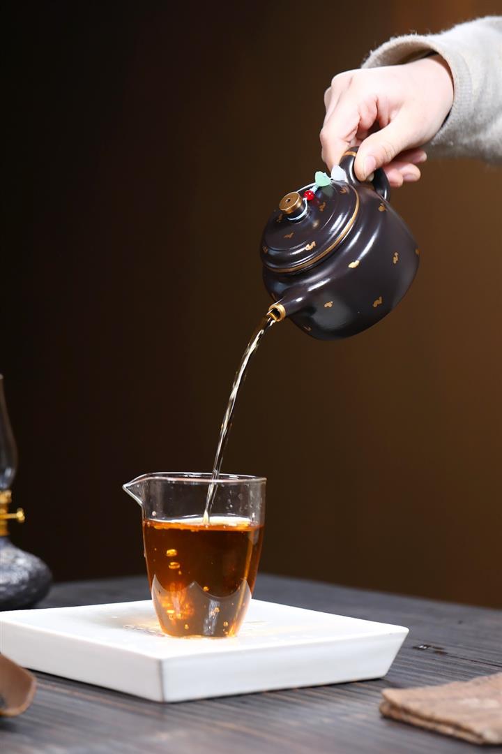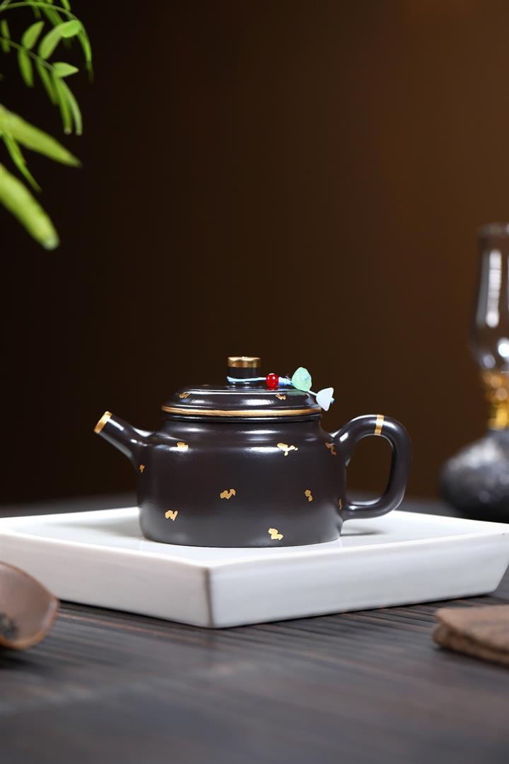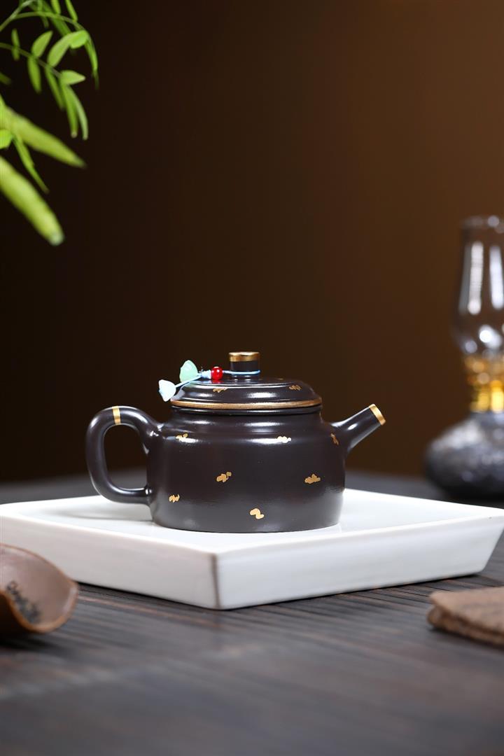 175cc原礦朱泥大紅袍灑金小潘壺泡茶壺POT9390