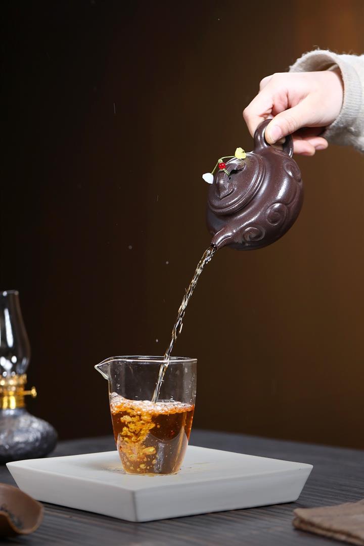 【泥料特點】砂土氣重,似淳實農民,日久使用,漸露鋒芒,養成變化,溫潤莊重。紫砂是壹種雙重氣孔結構的多孔性材質,氣孔微細,密度高。用紫砂壺沏茶,不失原味,且香不渙散,得茶之真香真味。紫砂使用越久,壺身色澤越發光亮照人,氣韻溫雅。紫砂壺長久使用器身會因撫摸擦拭,變得越發溫潤光澤。