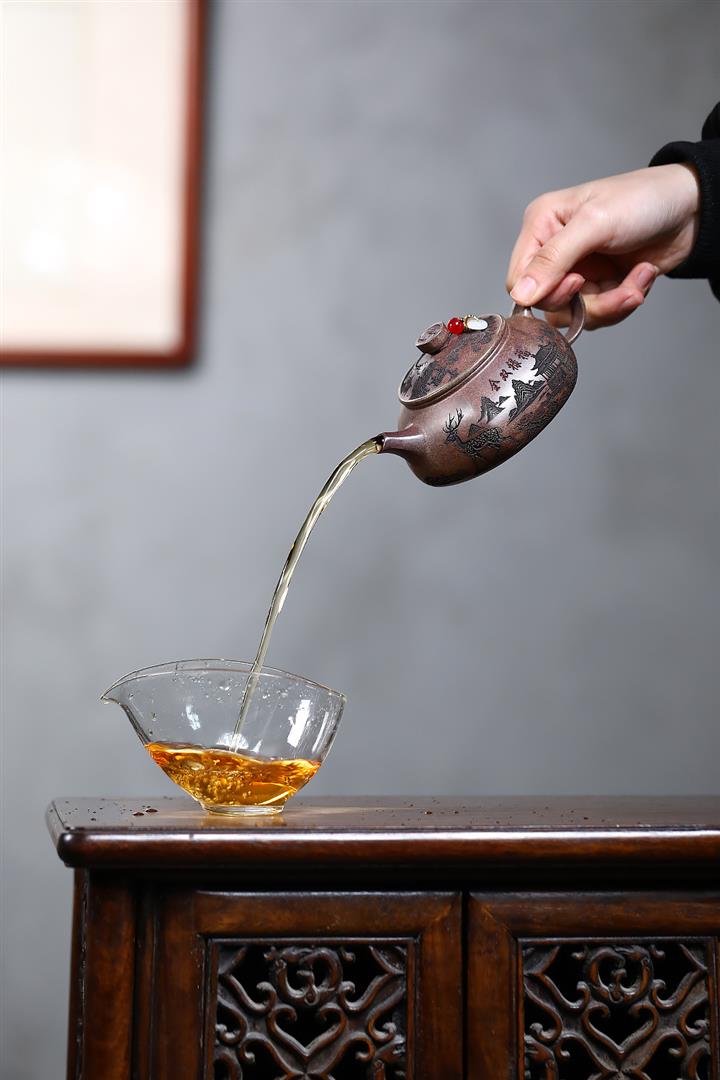 【泥料特點】砂土氣重,似淳實農民,日久使用,漸露鋒芒,養成變化,溫潤莊重。紫砂是壹種雙重氣孔結構的多孔性材質,氣孔微細,密度高。用紫砂壺沏茶,不失原味,且香不渙散,得茶之真香真味。紫砂使用越久,壺身色澤越發光亮照人,氣韻溫雅。紫砂壺長久使用器身會因撫摸擦拭,變得越發溫潤光澤。