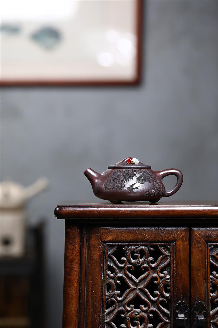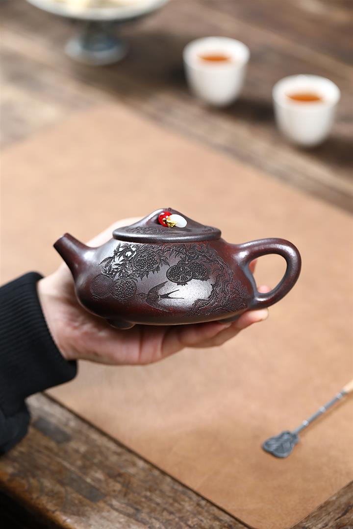 【作品介紹】此款壺形線條流暢,壺把,壺嘴,壺身壹氣呵成栩栩如生,是收藏把玩的好壺,泥料色澤古樸典雅,日久使用,漸露鋒芒,養成變化快,溫潤莊重,用其泡茶,使用的年代久,壺身就溫潤,泡出來的茶湯也就醇郁芳馨。