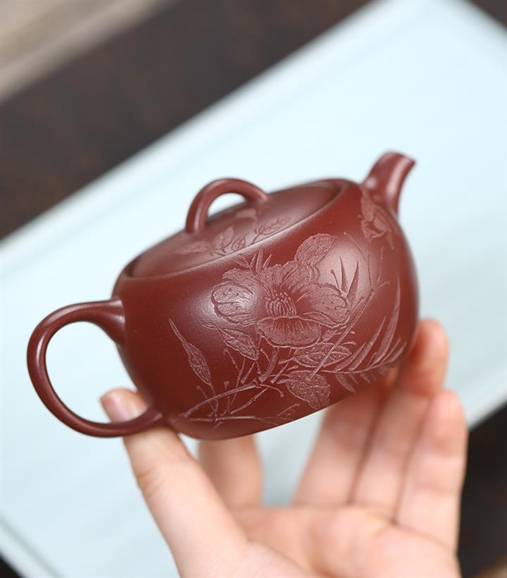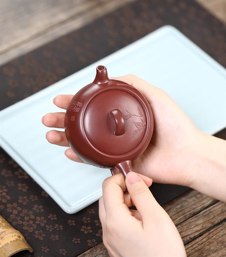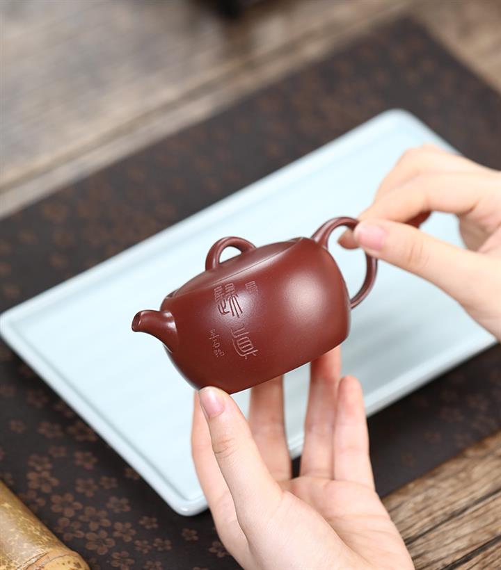 【泥料特點】砂土氣重,似淳實農民,日久使用,漸露鋒芒,養成變化,溫潤莊重。紫砂是壹種雙重氣孔結構的多孔性材質,氣孔微細,密度高。用紫砂壺沏茶,不失原味,且香不渙散,得茶之真香真味。紫砂使用越久,壺身色澤越發光亮照人,氣韻溫雅。紫砂壺長久使用器身會因撫摸擦拭,變得越發溫潤光澤。
